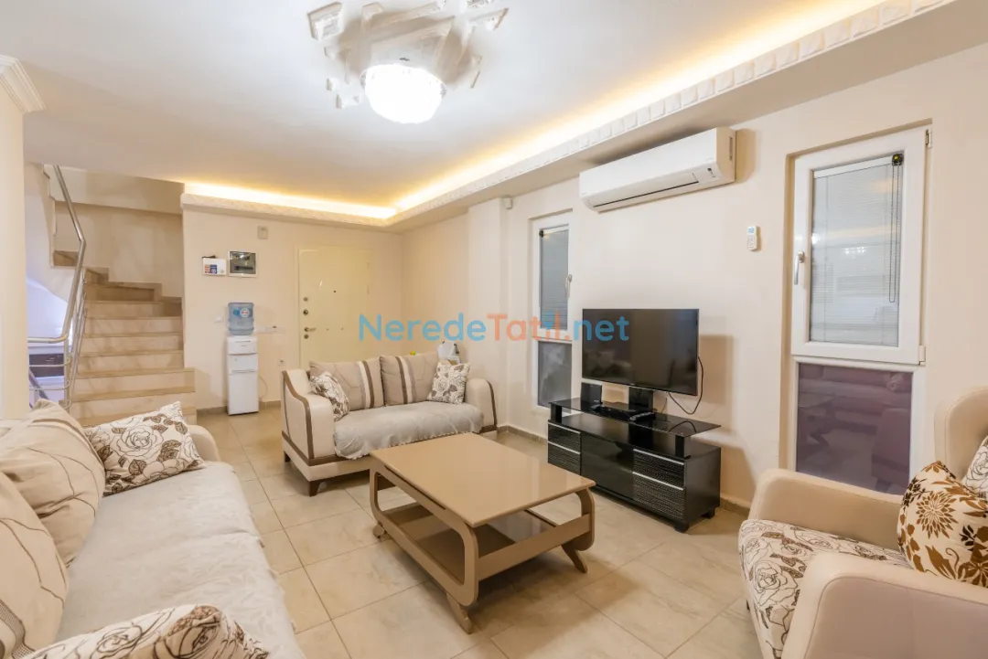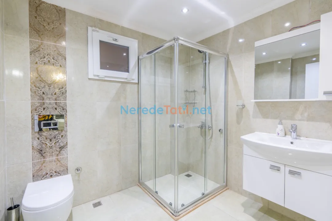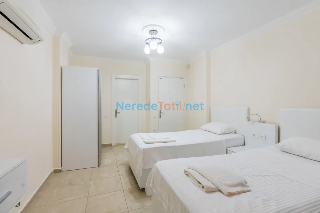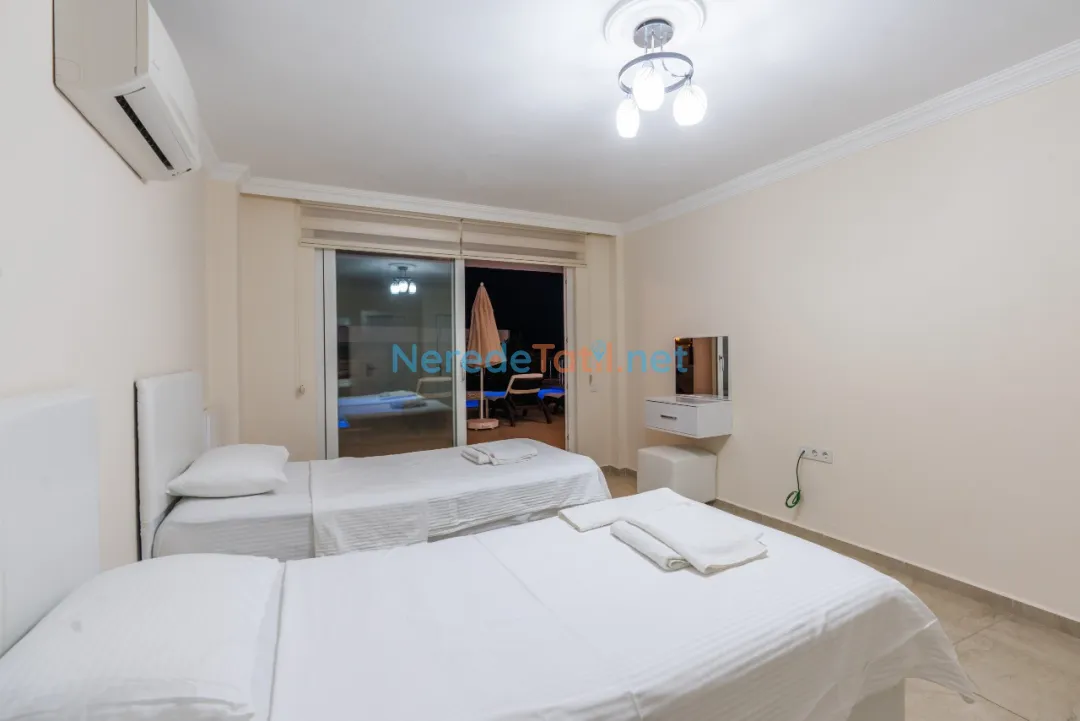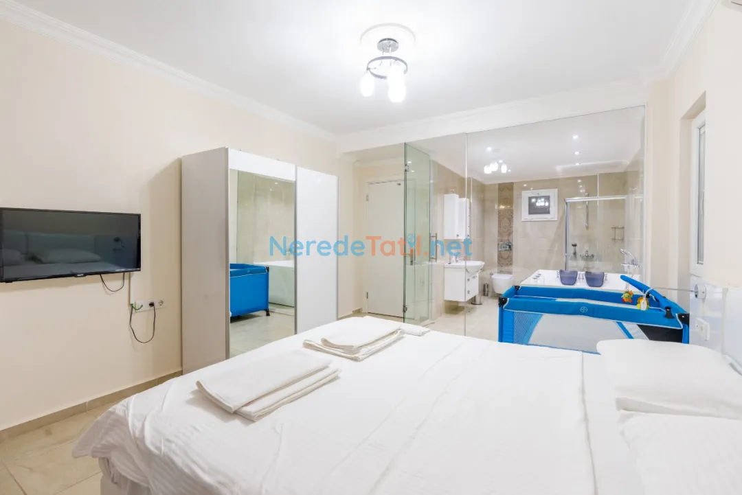 Villanın merkezi konumu ile market, restoran ve plaj gibi yerlere kolaylıkla ulaşabilirsiniz; market 400 metre, restaurant 900 metre ve plaj ise sadece 1000 metre mesafededir. Villanın şehir içindeki konumu, misafirlerine hem huzur hem de kolaylık sağlıyor.