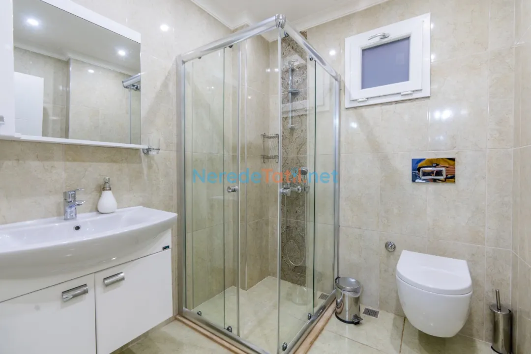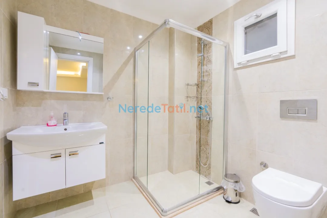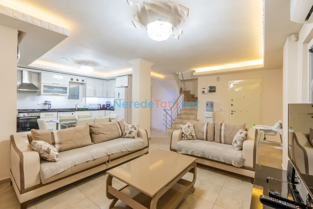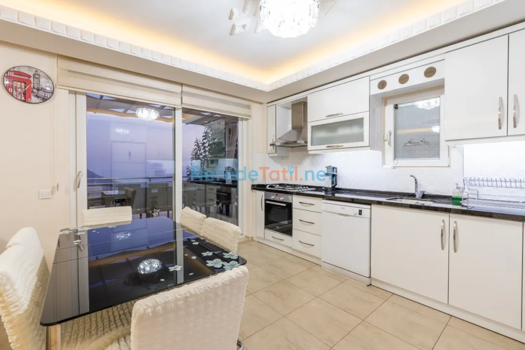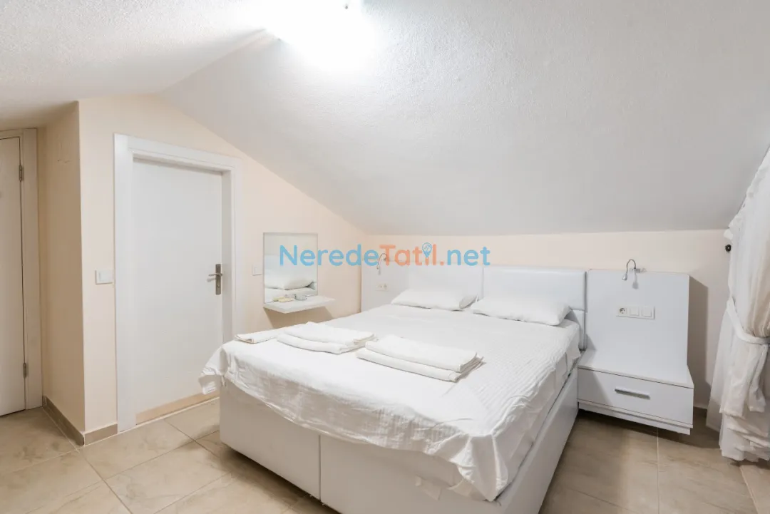 Villanın merkezi konumu ile market, restoran ve plaj gibi yerlere kolaylıkla ulaşabilirsiniz; market 400 metre, restaurant 900 metre ve plaj ise sadece 1000 metre mesafededir. Villanın şehir içindeki konumu, misafirlerine hem huzur hem de kolaylık sağlıyor.