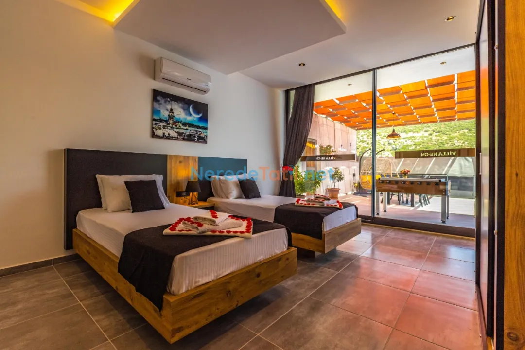 Villamız, balayı çiftleri ve doğayla iç içe bir tatil arayanlar için tasarlanmıştır; jakuzisi ile rahatlatıcı anlar yaşamanızı sağlar. İki yatak odasında, bir çift kişilik yatak ve iki tek kişilik yatak bulunmakta olup, toplamda 4 kişiye kadar konaklama imkanı sunulmaktadır. Ayrıca iki banyosu ile her türlü konforu sağlamaktadır.