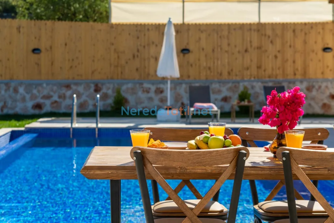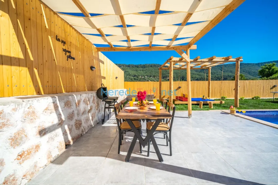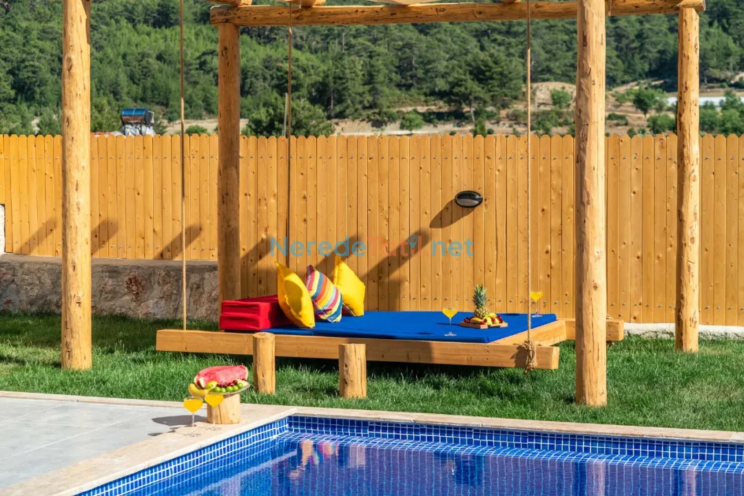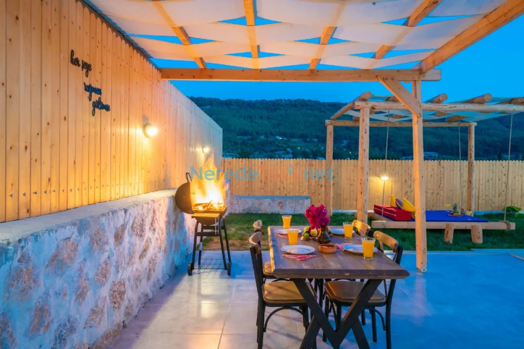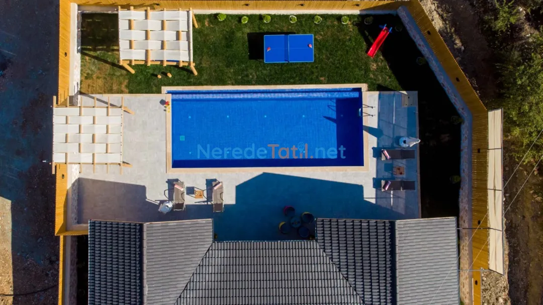 Villanın bahçesi güzel bir doğa manzarasına sahiptir, böylece her an doğayla iç içe olabilirsiniz. BBQ - Mangal imkanı ve masa tenisi gibi eğlenceli aktivitelerle sevdiklerinizle keyifli anlar paylaşabilirsiniz. Ayrıca, villanın korunaklı havuzu sayesinde mahremiyetinizi en üst düzeyde koruyabilirsiniz.