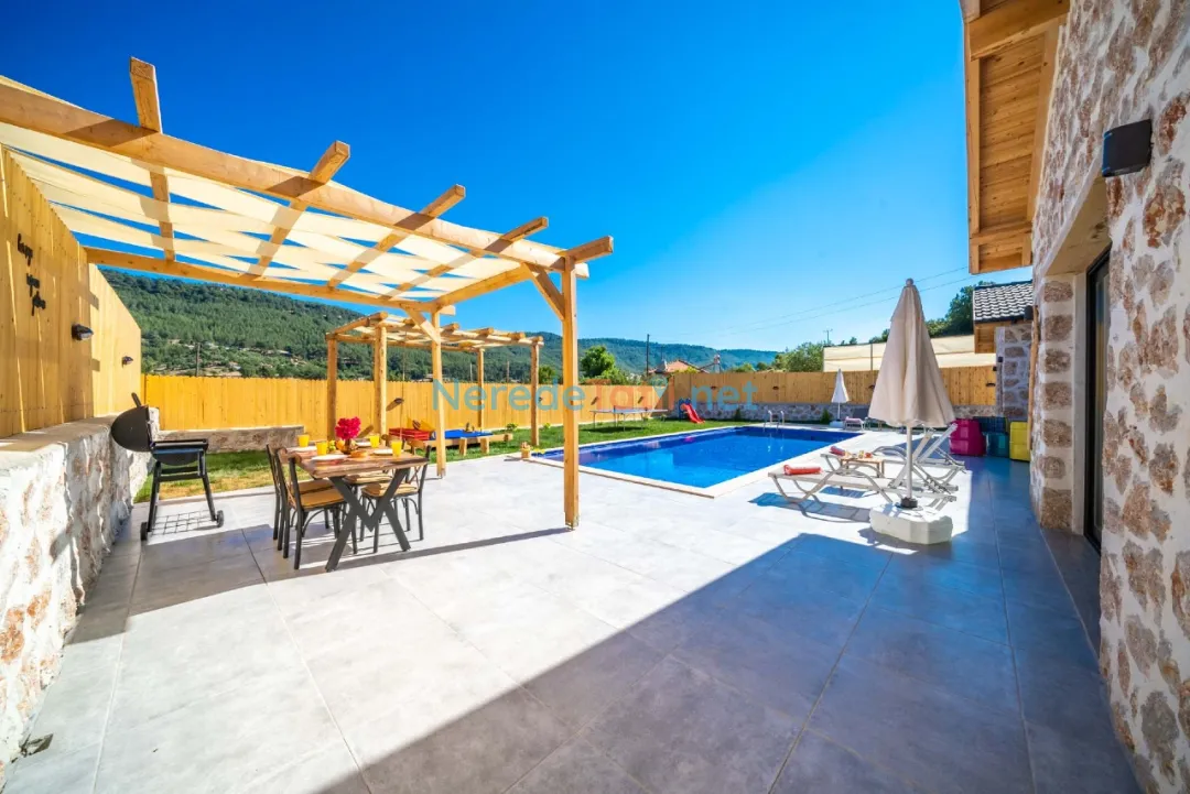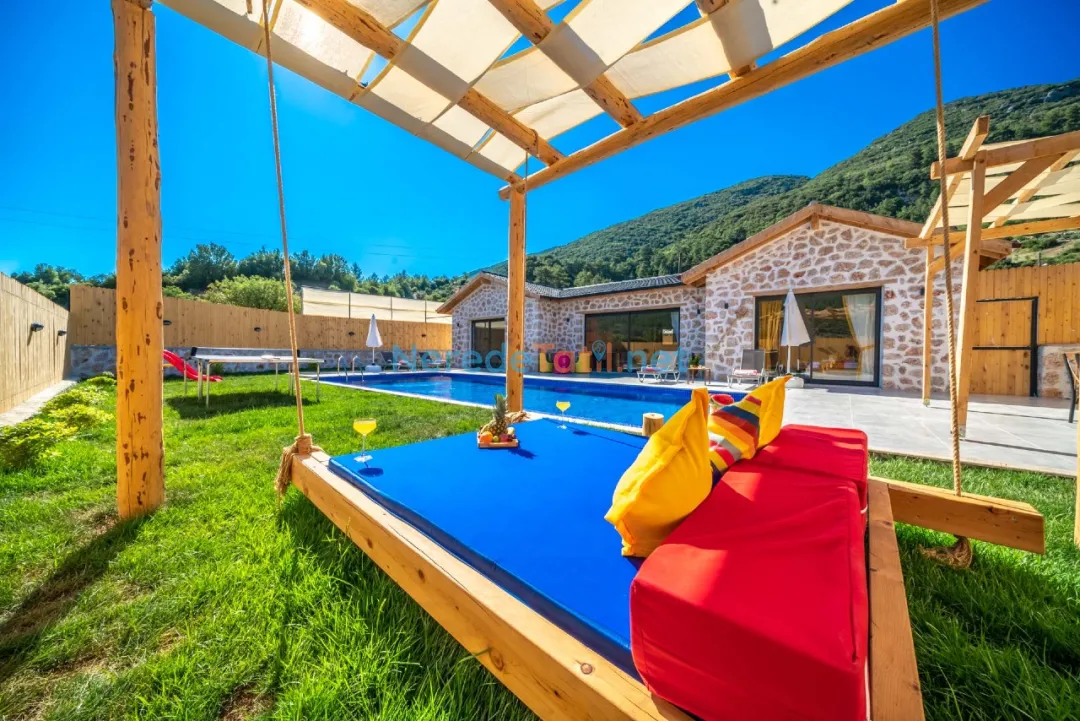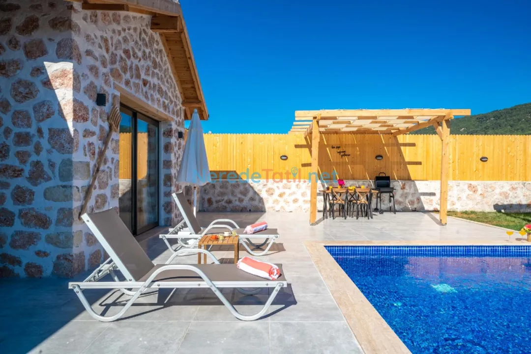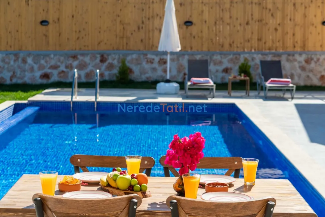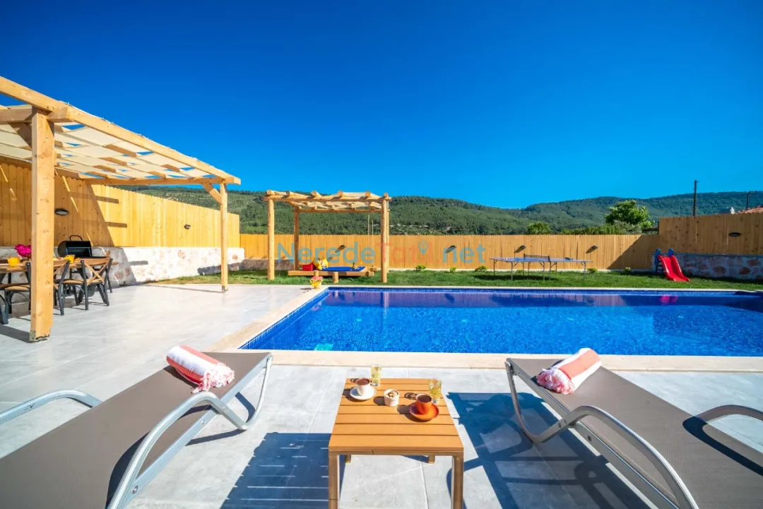 Villanın bahçesi güzel bir doğa manzarasına sahiptir, böylece her an doğayla iç içe olabilirsiniz. BBQ - Mangal imkanı ve masa tenisi gibi eğlenceli aktivitelerle sevdiklerinizle keyifli anlar paylaşabilirsiniz. Ayrıca, villanın korunaklı havuzu sayesinde mahremiyetinizi en üst düzeyde koruyabilirsiniz.