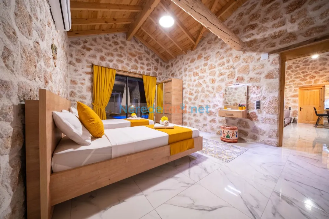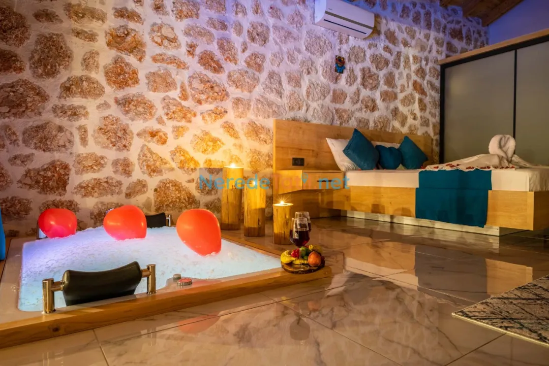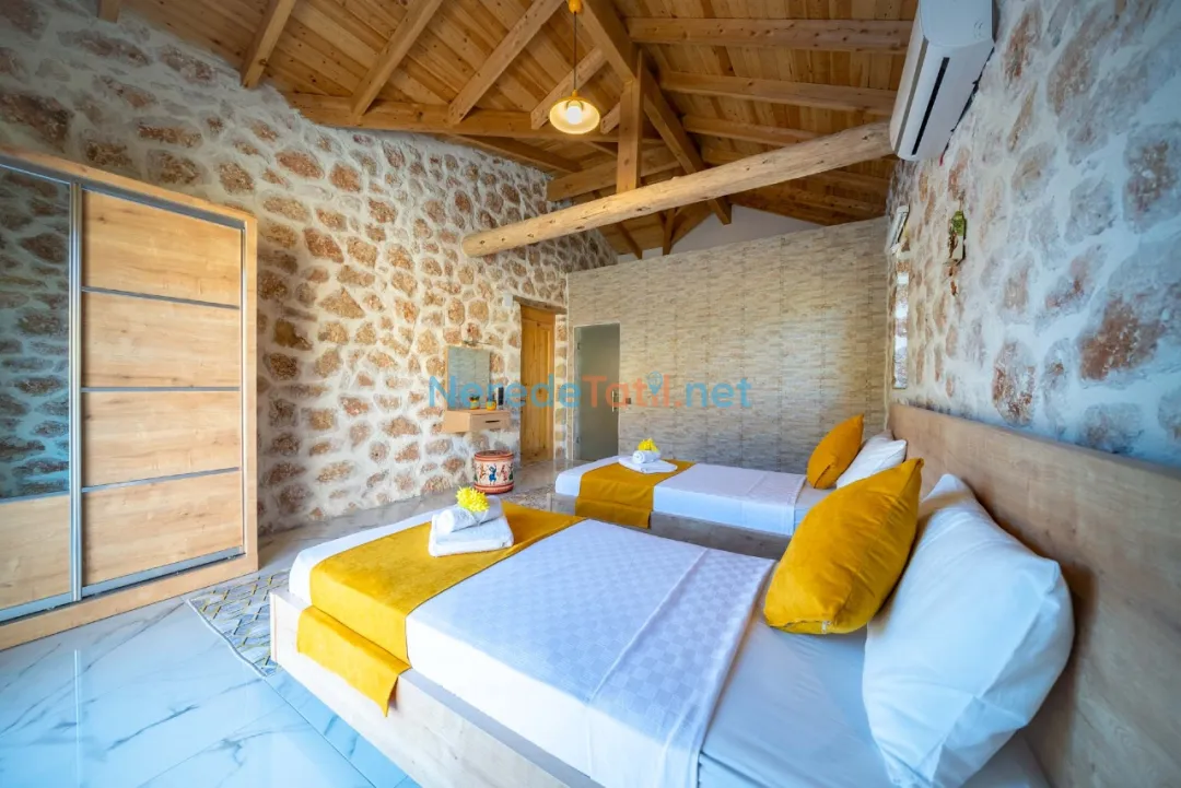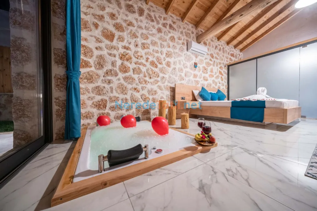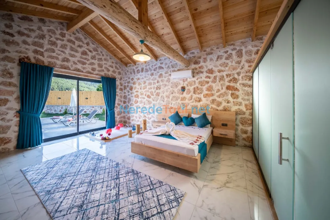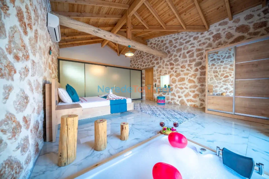 Villanın içinde iki yatak odası ve iki banyo bulunmaktadır. Misafirler, bir çift kişilik yatak ve iki tek kişilik yatak sayesinde konforlu bir konaklama deneyimi yaşar. Jakuzi de villanın öne çıkan özelliklerindendir, konuklara harika bir rahatlama imkanı sunar.