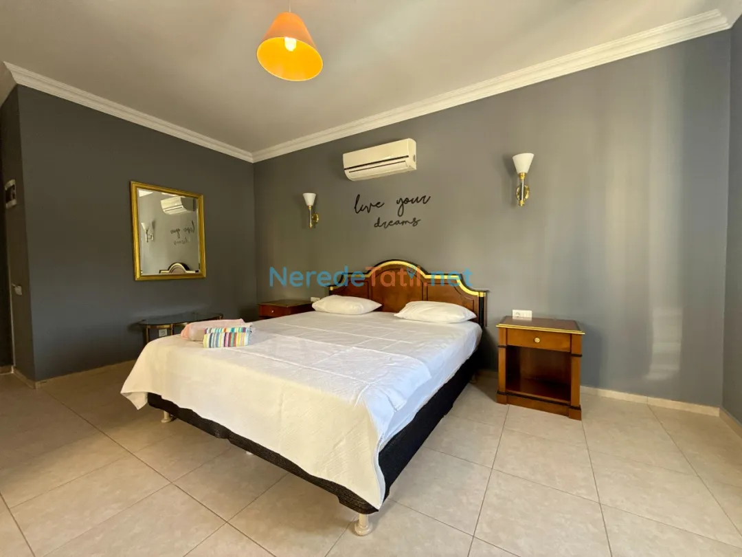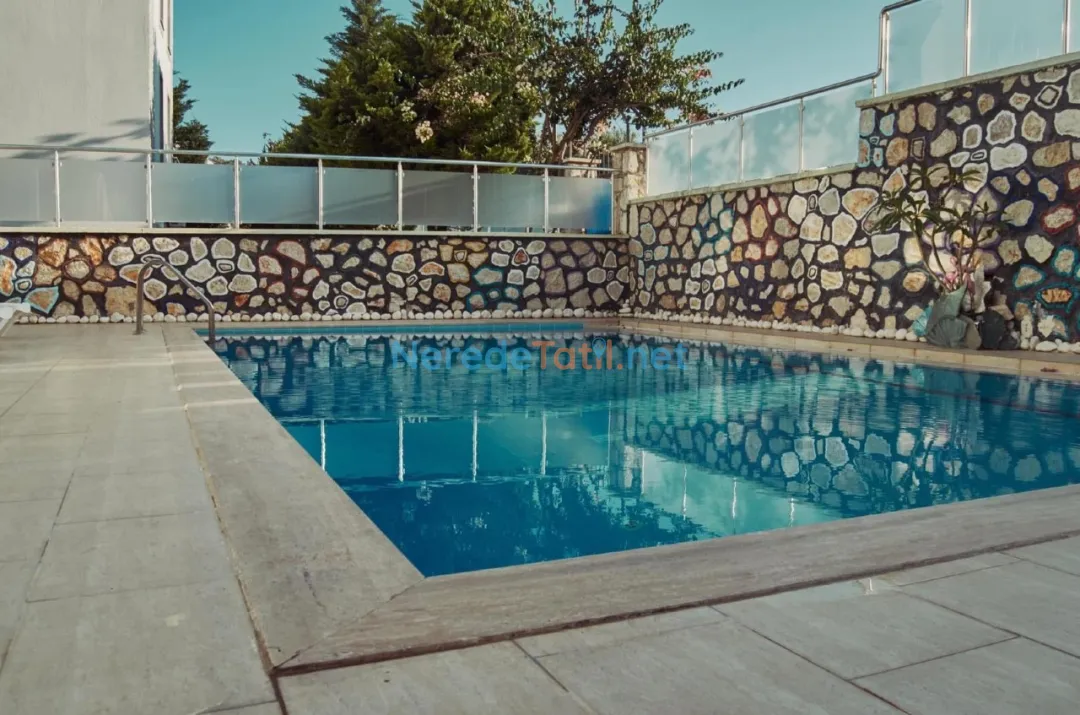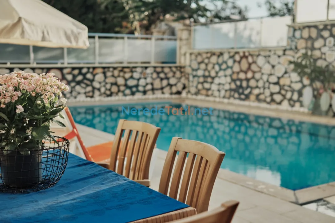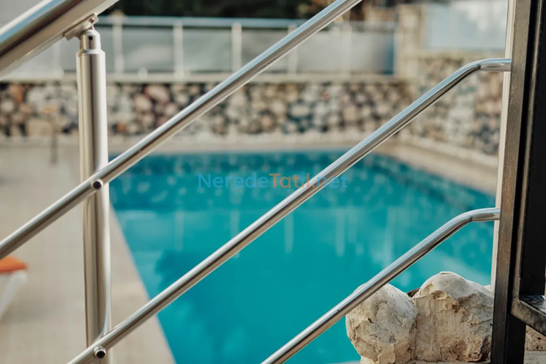 Villanın en dikkat çekici özelliklerinden biri olan özel yüzme havuzu, 5 metre genişlik, 10 metre uzunluk ve 1.55 metre derinlik ile tatilinizi serinletici bir keyif noktasına dönüştürür. Ayrıca, villa plaj, market, restoran ve merkeze sadece 1 kilometre mesafede yer almaktadır, bu da konaklamanızı oldukça kolaylaştırır.