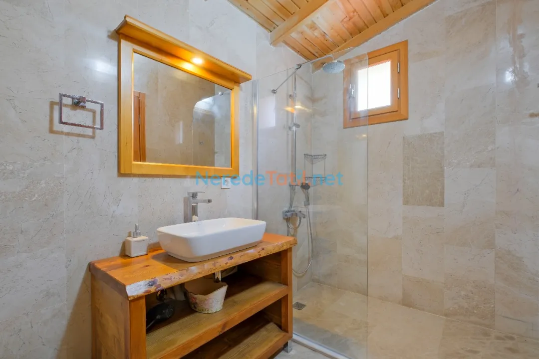 Villanın en dikkat çekici özelliği, korunaklı ve ısıtmalı özel havuzu. 4 metre genişliğinde ve 11 metre uzunluğundaki bu muhteşem havuz, tatilinizi daha da özel kılacak. Havuzun derinliği ise 1.5 metredir. Dilerseniz, mangal keyfi yapabileceğiniz bahçeli alanda, doğayla iç içe zaman geçirebilirsiniz.