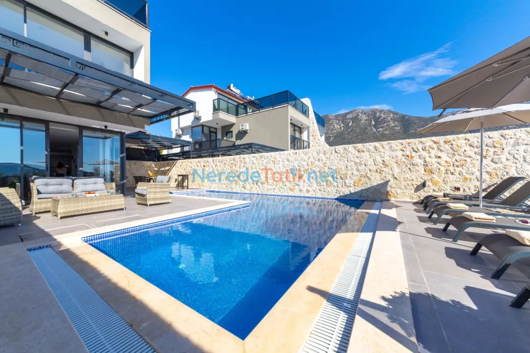 Villanın en dikkat çekici özelliklerinden biri özel yüzme havuzudur. 4 metre eninde, 9 metre boyunda ve 1.55 metre derinliğindeki havuz, tatiliniz boyunca serinlemeniz ve rahatlamanız için mükemmeldir. Ayrıca, Kalkan'ın deniz ve doğa manzarası eşliğinde huzur içinde vakit geçirebilirsiniz.