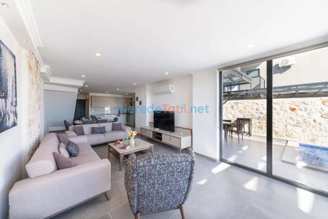 Kalkan'ın eşsiz doğal güzellikleri içinde yer alan bu lüks villa, size unutulmaz bir tatil deneyimi sunuyor. Üç yatak odası ve üç banyo ile toplamda altı kişilik konaklama kapasitesine sahip olan villa, özellikle aileler ve arkadaş grupları için ideal bir konaklama imkanı sağlıyor.