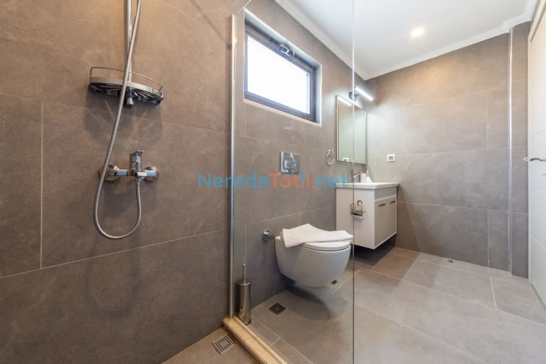 Villada bahçe, BBQ - Mangal alanı ve otopark gibi olanaklar da bulunmaktadır. Tatiliniz boyunca rahatlığınızı sağlamak için saç kurutma makinesi ve ütü gibi temel ihtiyaçlarınızı karşılayacak ekipmanlar da mevcuttur. Böylesine kapsamlı ve konforlu bir tatil deneyimi için Kalkan'daki bu harika villayı tercih edebilirsiniz.