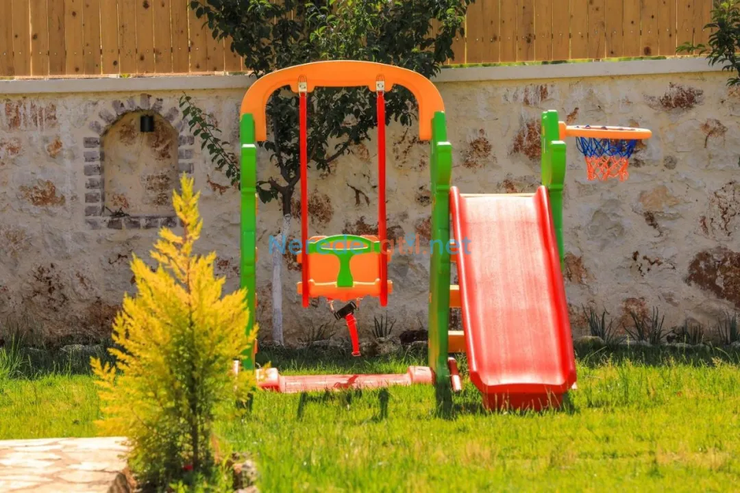 Villanın korunaklı havuzu 3.5 metre genişliğinde, 10 metre uzunluğunda ve 1.5 metre derinliğinde olup, mahremiyetinize önem verir. Çocuklar için özel çocuk havuzu ise 1 metre genişlik, 8 metre uzunluk ve 0.4 metre derinliğe sahiptir. Tatiliniz boyunca doğa manzarası eşliğinde huzur bulabilir, geniş bahçede barbekü ve mangal keyfi yapabilirsiniz.