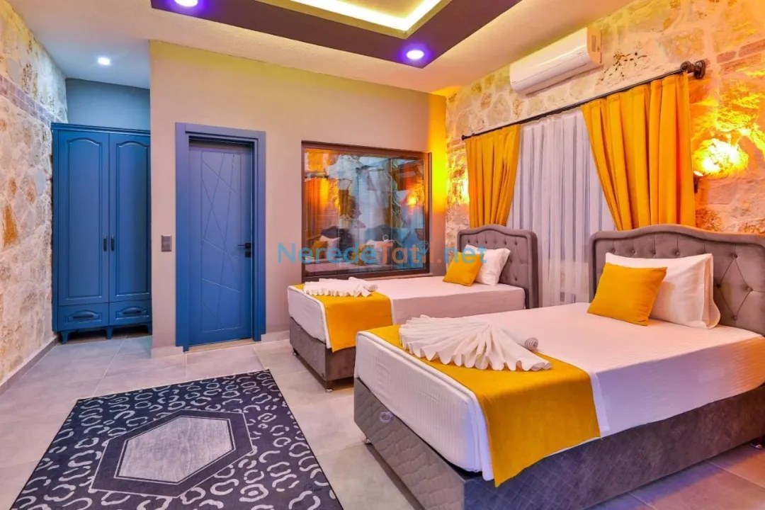 Kaş'ın huzurlu doğasında yer alan bu lüks villa, unutulmaz bir tatil deneyimi sunar. Balayı çiftleri için özel olarak tasarlanmış villamızda, konforlu bir konaklama için gerekli tüm detaylar düşünülmüştür. İki yatak odası ve iki banyo ile toplamda dört kişiye kadar konaklama imkanı sağlayan villamız, jakuzi ve özel havuz gibi ayrıcalıklarla donatılmıştır.