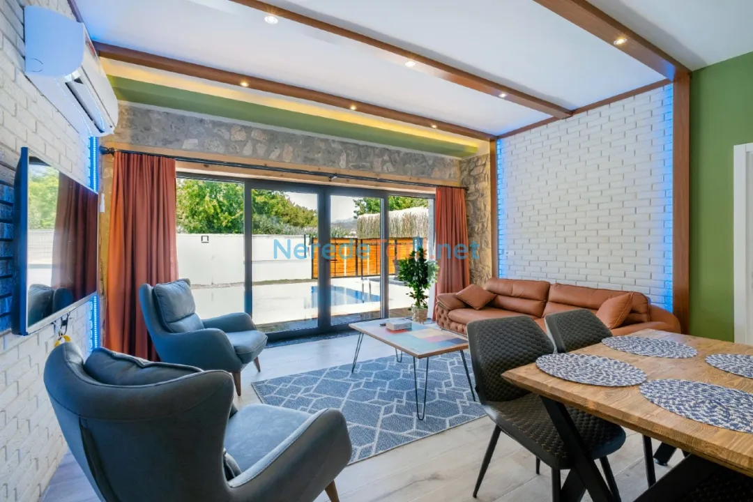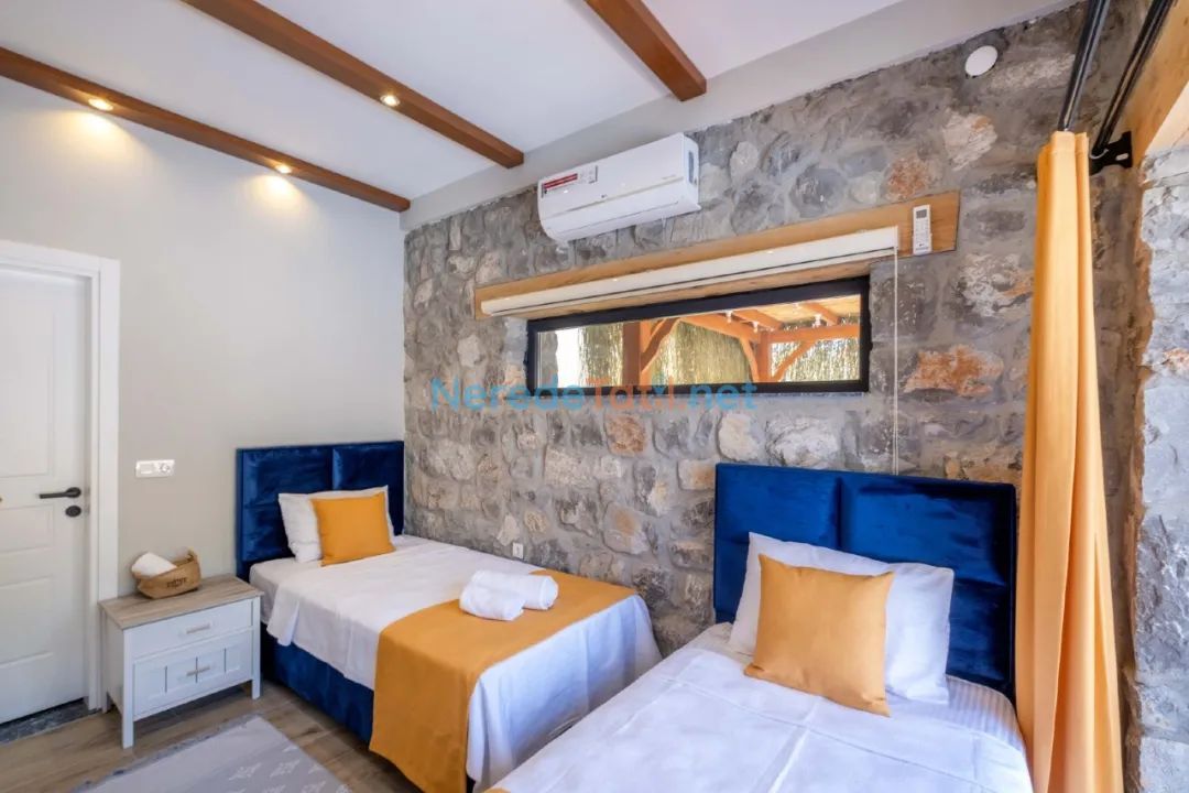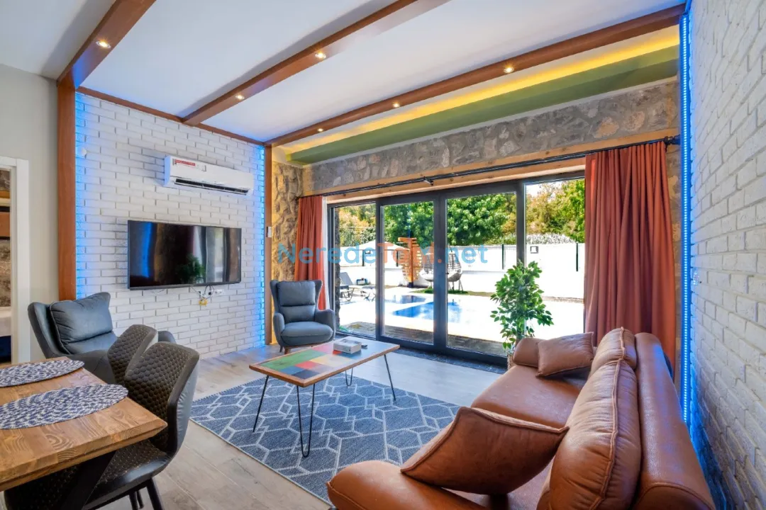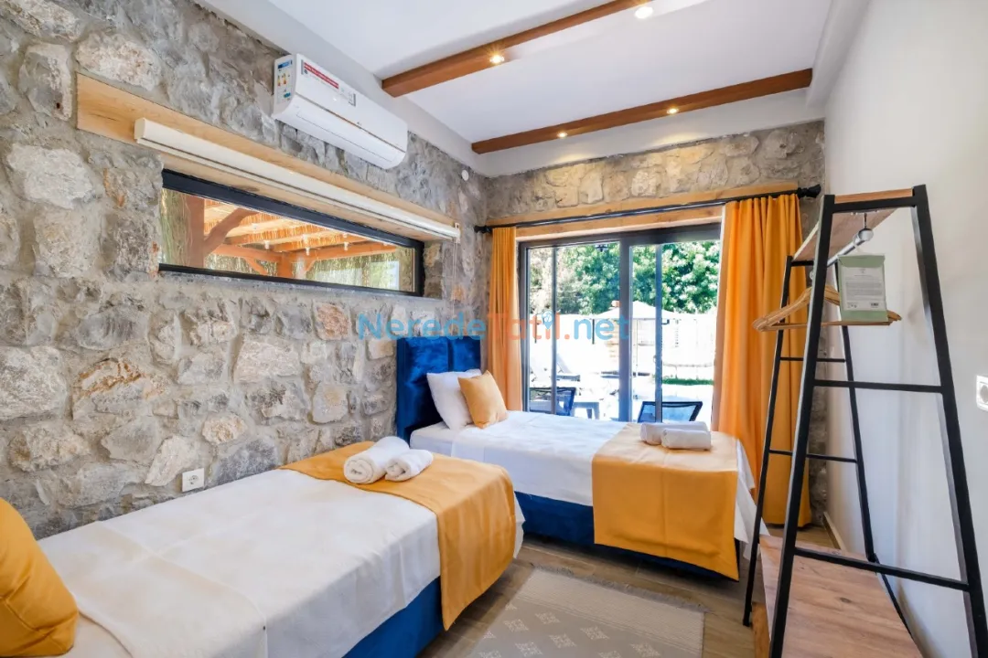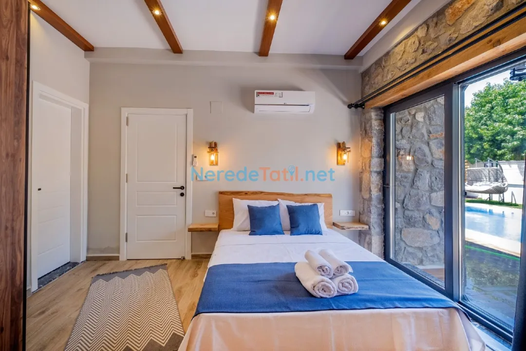 Fethiye'nin büyüleyici doğasında, dört kişilik konforlu bir tatil deneyimi sunan bu lüks villa, mükemmel bir kaçamak için idealdir. Özel yüzme havuzu 4 metre genişliğinde ve 7 metre uzunluğundadır. Havuz başında BBQ - Mangal keyfi yapabilir, doğa manzarasının tadını çıkarabilirsiniz.