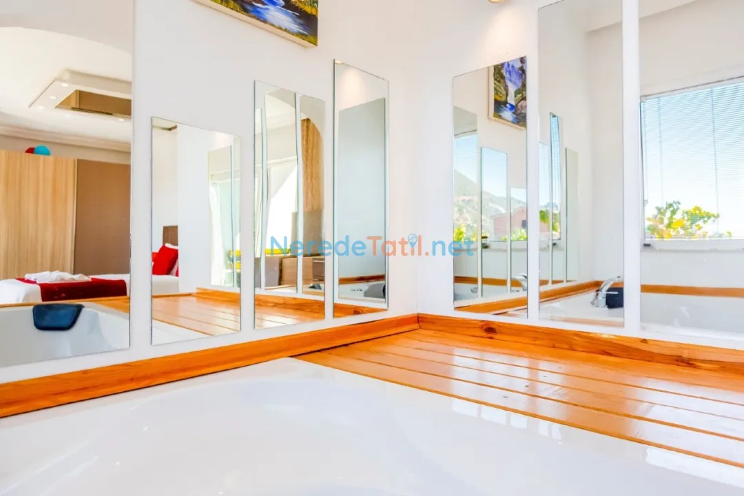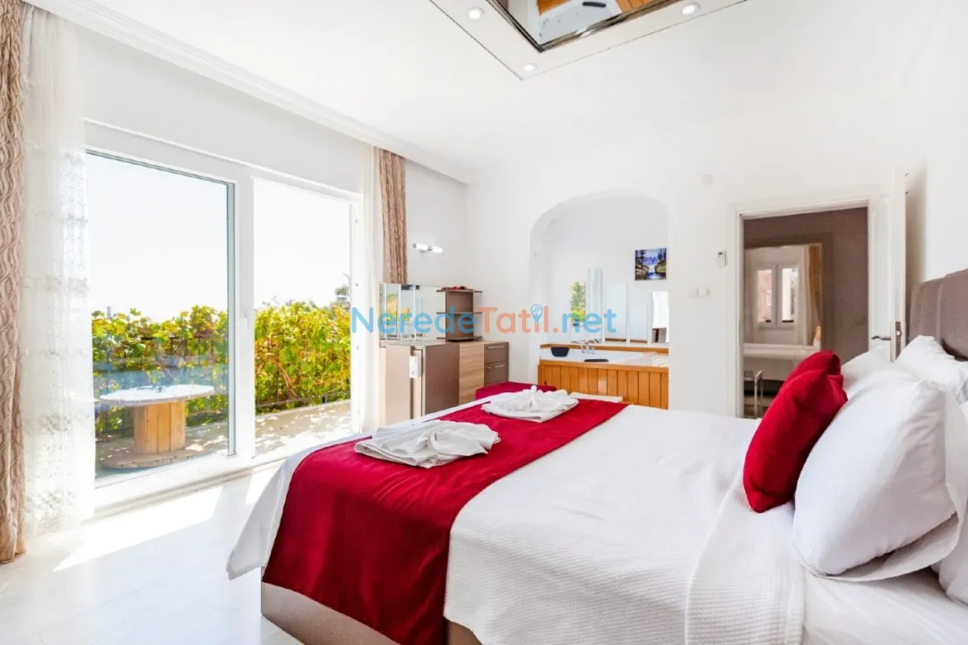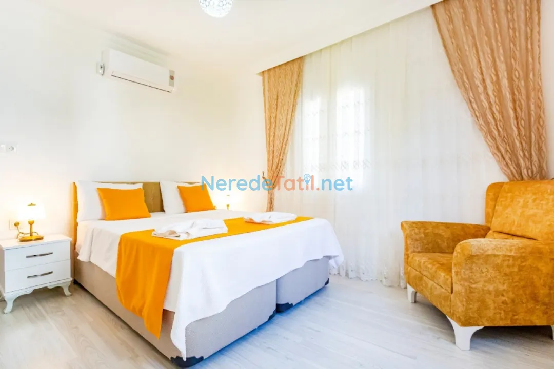Özellikle balayı çiftleri ve muhafazakar tatilciler için ideal olan bu villada, lüks ve konfor dolu bir tatil deneyimi sizleri bekliyor. Saç kurutma makinesi ve ütü gibi detaylarla dolu, her anınızı daha keyifli hale getirecek olanaklar sunulmaktadır.