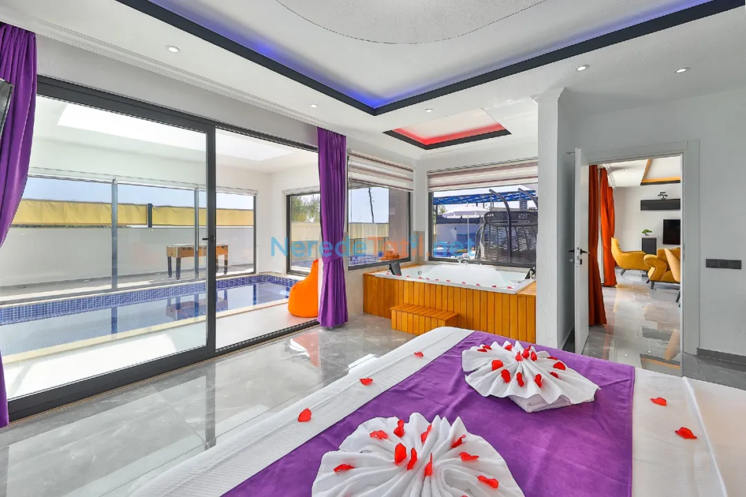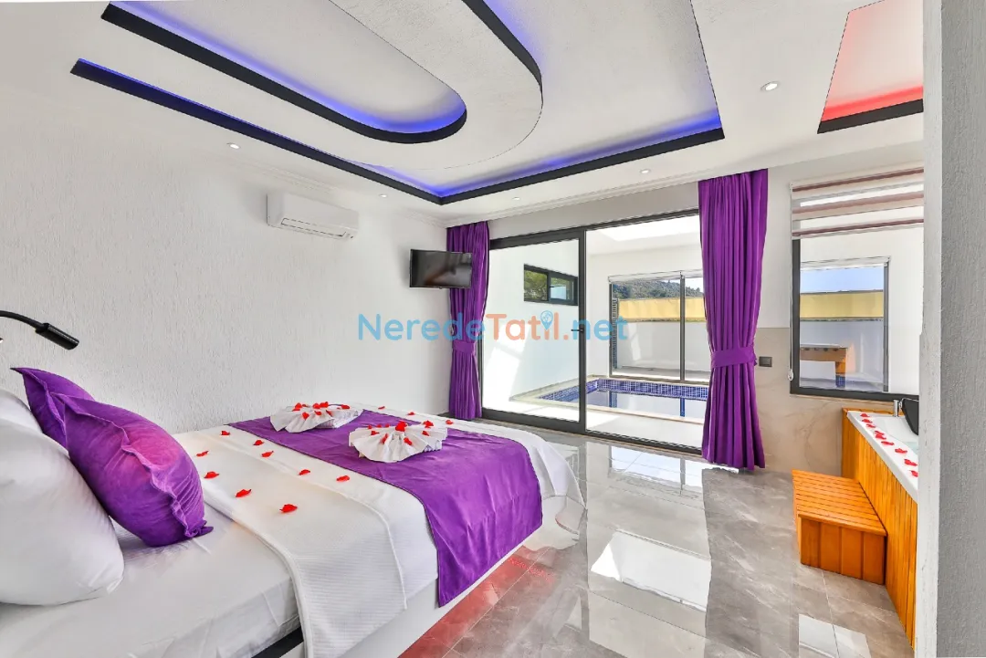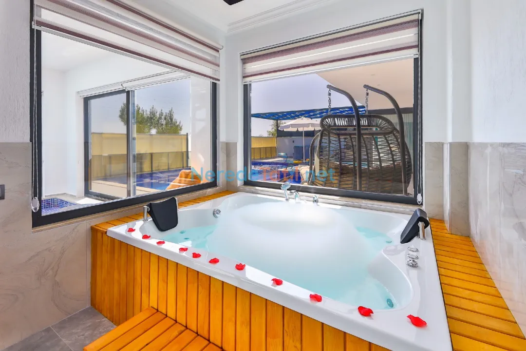 Villa, korunaklı havuz özelliği ile mahremiyet arayan tatilciler için uygun bir seçenektir. Jakuzi, sauna ve hamam gibi lüks olanaklar, tatilinizi daha da özel kılacaktır. Göz alıcı doğa manzaralı konumu ile villanız, şehir stresinden uzaklaşmak isteyenler için mükemmel bir sığınak sunar.