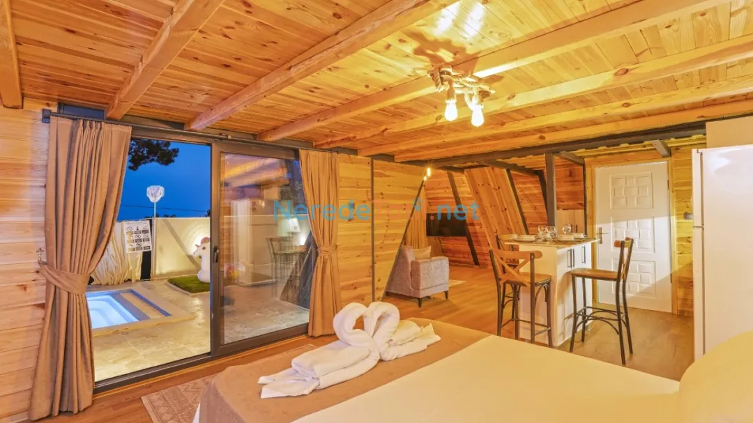 Bu büyüleyici Bungalow, lüks ve muhafazakar tatil deneyimini bir arada sunar, sizi doğanın kalbinde unutulmaz bir tatil yaşamaya davet eder.