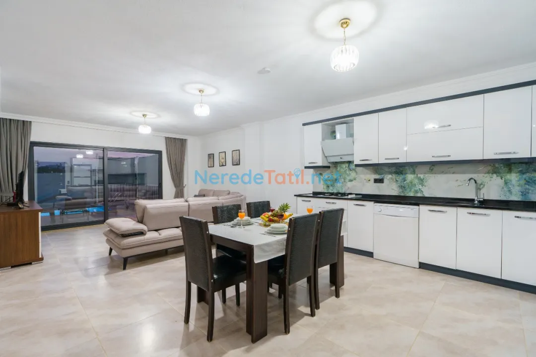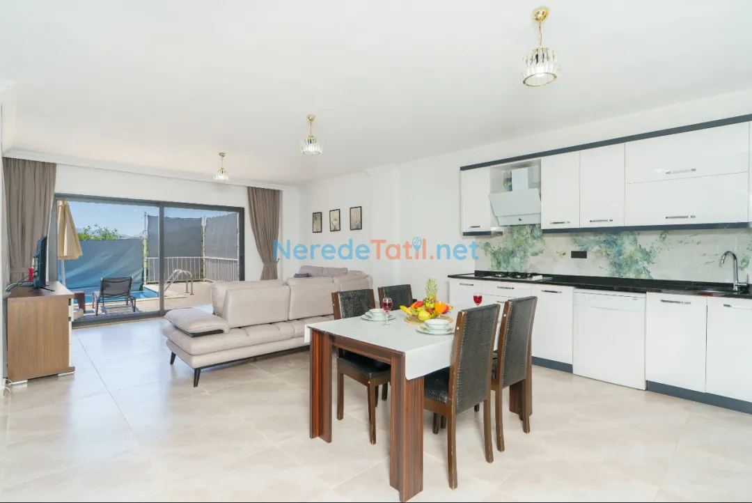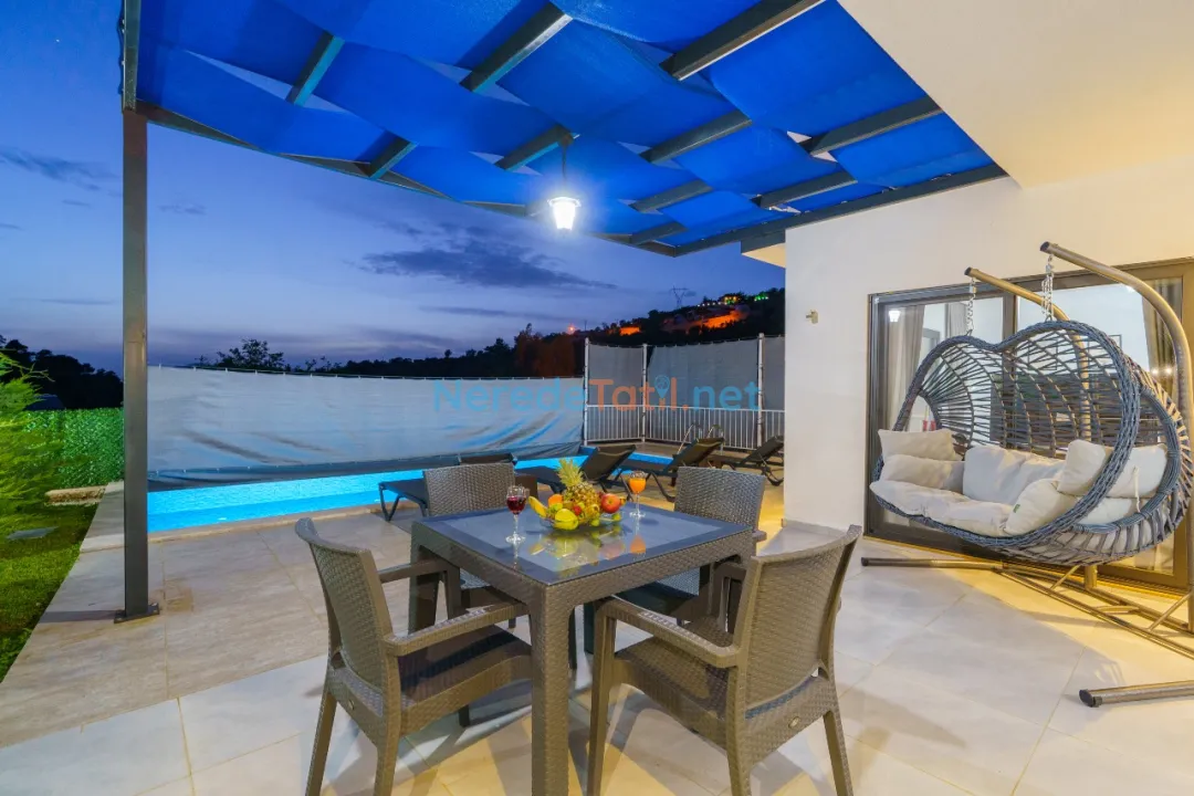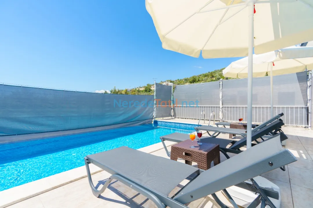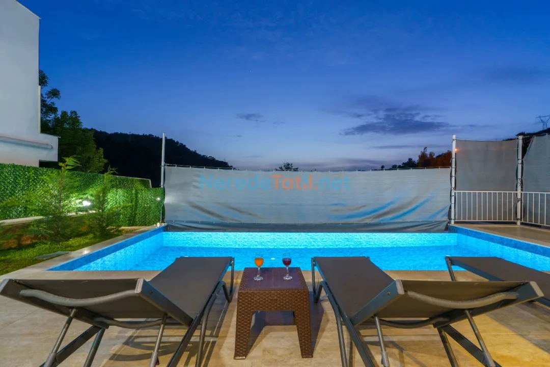 Villanın özel havuzu, 4 metre eninde, 8 metre boyunda ve 1,5 metre derinliğinde olup, korunaklı yapısıyla mahremiyet sağlamaktadır. Havuz başında doğa manzarasının keyfini çıkararak, huzur dolu anlar yaşayabilirsiniz. Bahçesi sayesinde doğayla iç içe bir tatil yapma fırsatı sunan villa, BBQ - Mangal alanı ile lezzetli yemekler hazırlamanıza imkan tanır.