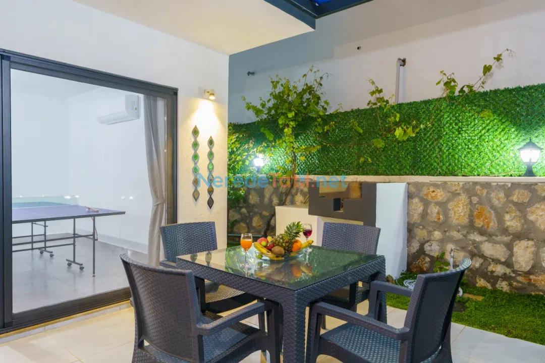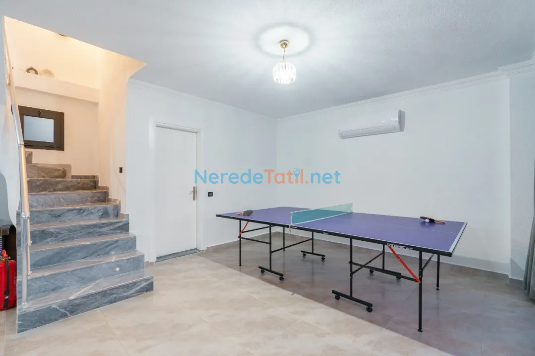 Villada bulunan masa tenisi ile eğlence dolu anlar geçirme şansınız da var. Ayrıca, otopark imkanları sayesinde aracınızı güvenle park edebilirsiniz. Villanın konforunu artırmak adına tüm detaylar düşünülmüş; saç kurutma makinesi ve ütü de mevcuttur.