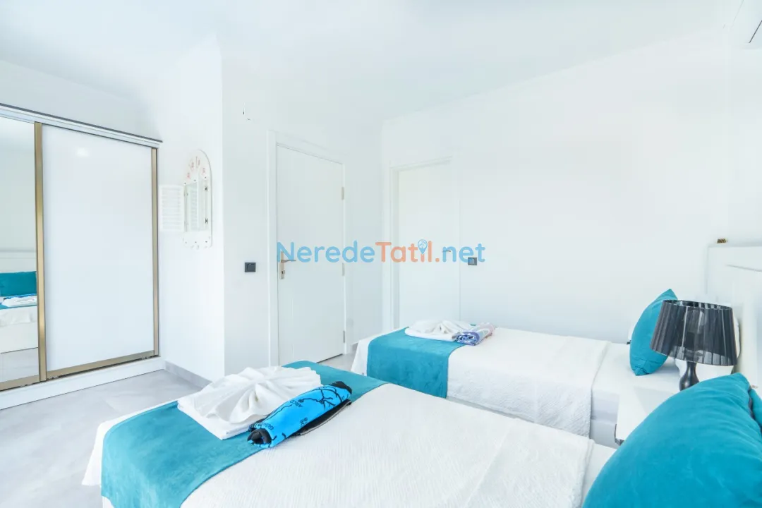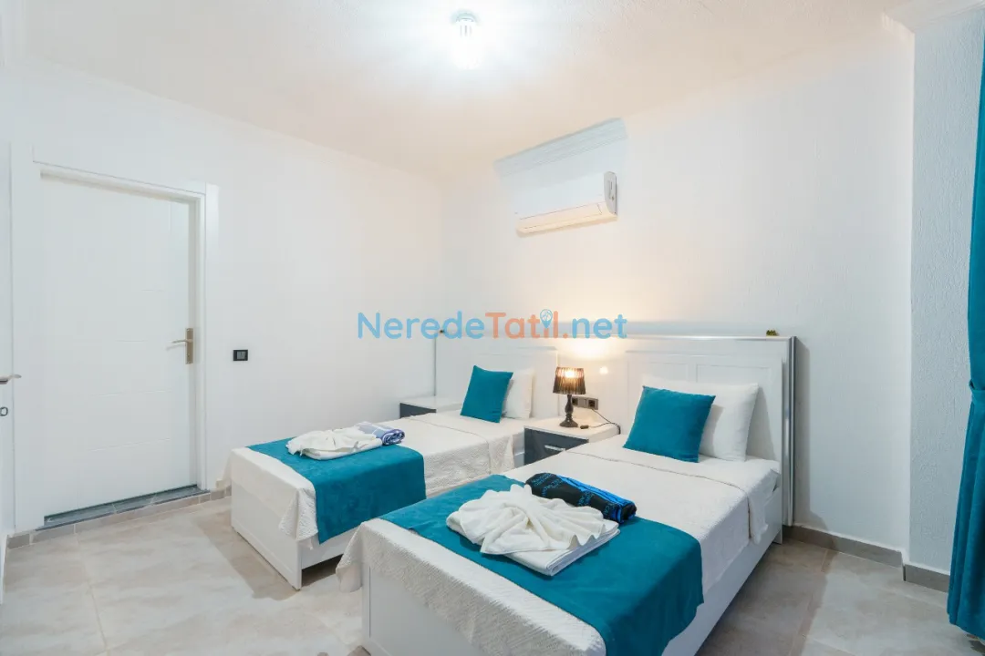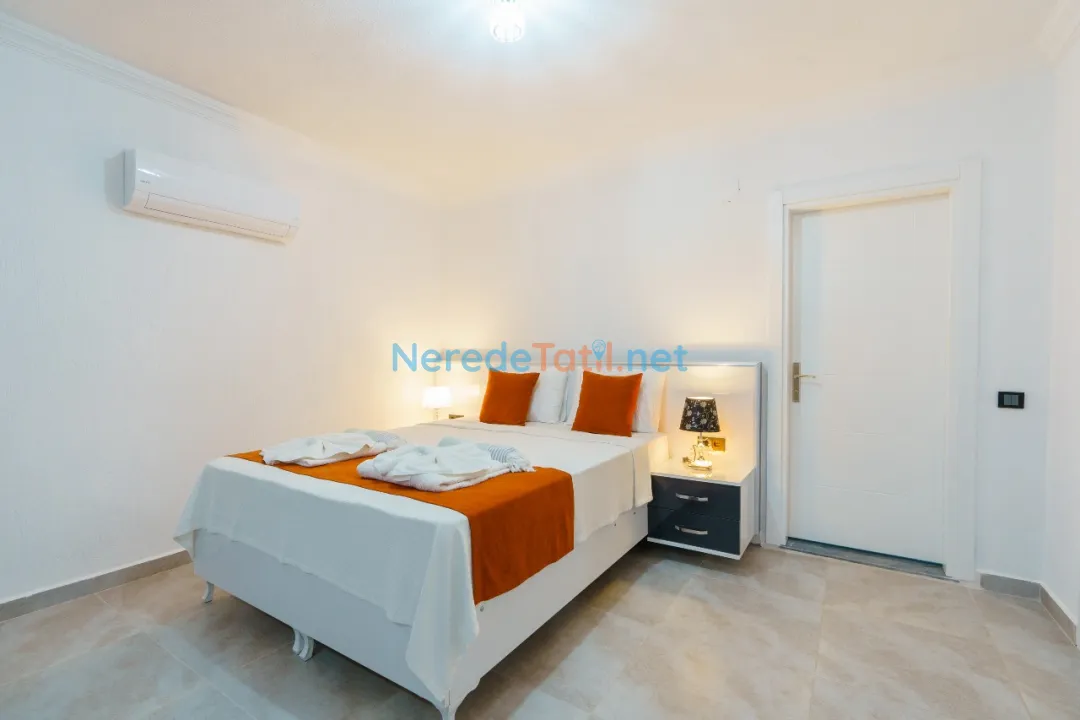 İslamlar bölgesinde, huzur dolu bir tatil deneyimi sunan bu villa, lüks ve muhafazakar tatilciler için ideal bir seçenek. Villada iki yatak odası bulunmakta olup, bir oda çift kişilik yatak ve diğer oda iki tek kişilik yatak ile donatılmıştır. İki banyo ile konforunuz ön planda tutulmuştur.