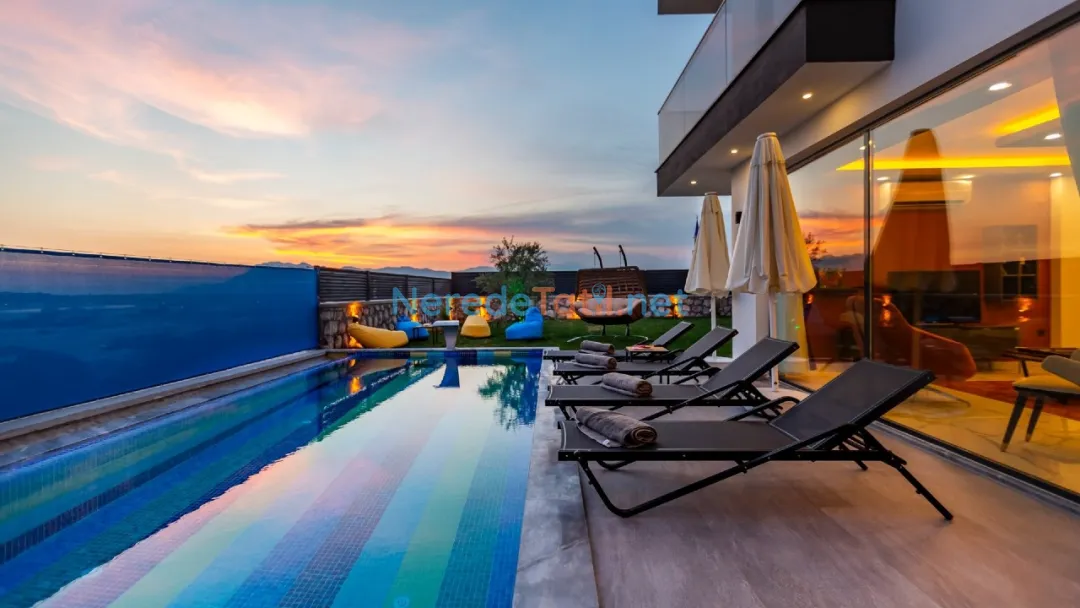 Bu özel villa, jakuzi ve sauna gibi lüks detaylarıyla dikkat çekiyor. Konuklar, genişliği 3.5 metre ve uzunluğu 11 metre olan havuzda serinleyebilirler. Havuzun derinliği 1.5 metredir, bu da yüzme keyfini güvenli bir şekilde çıkarmanızı sağlar.