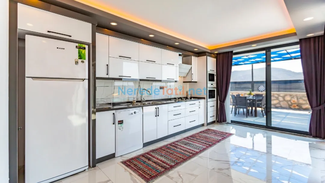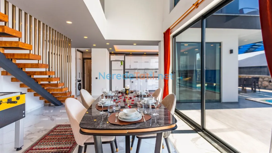 Villanın konumu da oldukça avantajlı; marketlere sadece 250 metre mesafede olup, plaj ve restoranlar 7 km uzaklıktadır. Havaalanına ise 125 km mesafede bulunan villa, sessiz bir tatil deneyimi sunarken aynı zamanda ihtiyaç duyabileceğiniz her şeye kolayca ulaşmanızı sağlar.