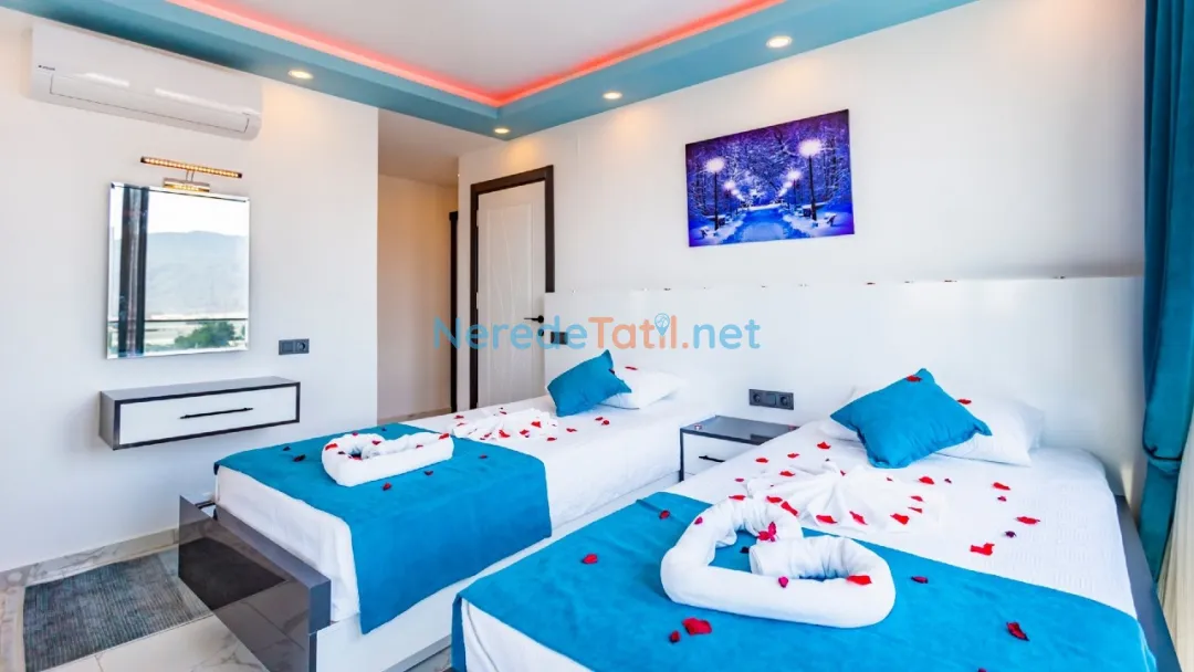 Yeşilköy'ün büyüleyici doğası içinde özel havuzlu ve lüks bir villa tatili planlıyorsanız, bu villa tam size göre. 4 kişilik kapasitesiyle hem balayı çiftleri hem de küçük aileler için ideal bir seçenek sunuyor. Villada iki yatak odası ve iki banyo bulunuyor; bir çift kişilik yatak ve iki tek kişilik yatak ile konforlu bir konaklama sağlanıyor.