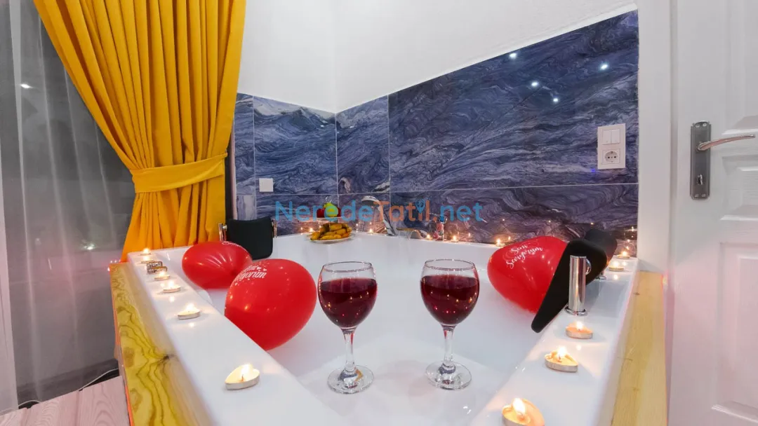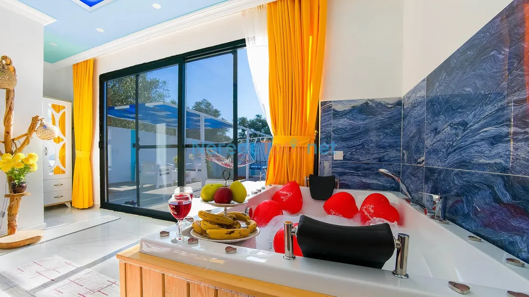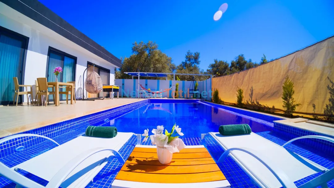 Üzümlü'nün göz alıcı doğasında, iki kişilik kapasitesi ve lüks konforu ile balayı tatilinizi unutulmaz kılacak bir villa sizi bekliyor. Villada bir adet çift kişilik yatak ve özel jakuzi bulunan bir banyo mevcuttur. Konforunuz için düşünülmüş özel havuzu 3,5 metre genişliğinde, 10 metre uzunluğunda ve 1,55 metre derinliğindedir. Havuzun etrafı korunaklı olup, size özel bir yüzme deneyimi sunar.