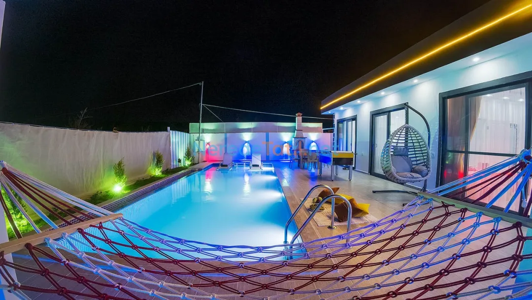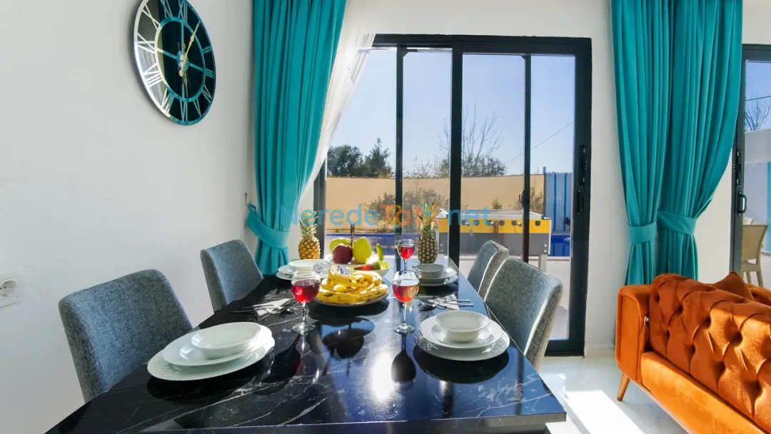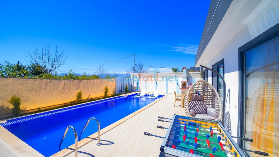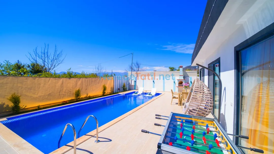 Villanın bahçesinde mangal keyfi yapabilir, doğa manzarasının tadını çıkarabilirsiniz. Araçla gelen misafirler için otopark alanı mevcuttur. Tatilinizi daha eğlenceli hale getirmek için langırt da bulunmaktadır. En yakın markete ve restorana sadece 1 kilometre uzaklıktaki villamız, şehir merkezine ve plajlara da 7 kilometre mesafededir.