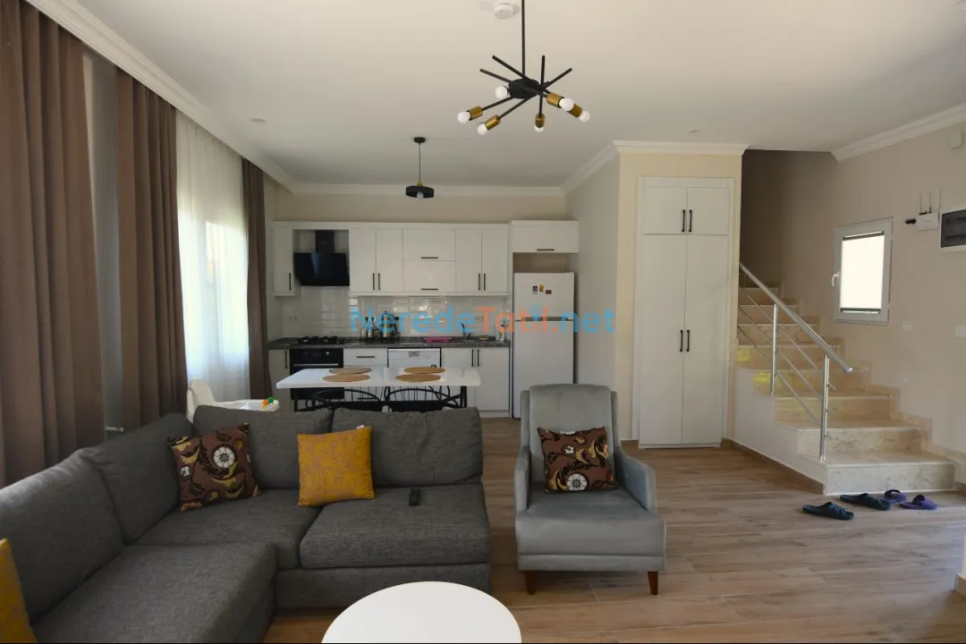Konforunuz için her detayın düşünüldüğü villamız, geniş ve ferah iç mekânlarıyla huzur dolu bir ortam sunuyor. Geniş yatak odaları ve modern banyolar sayesinde konforunuzdan ödün vermeden dinlenebilirsiniz. Ayrıca, tam donanımlı mutfakta kendi yemeklerinizi hazırlayabilir ve sevdiklerinizle keyifli zaman geçirebilirsiniz.
