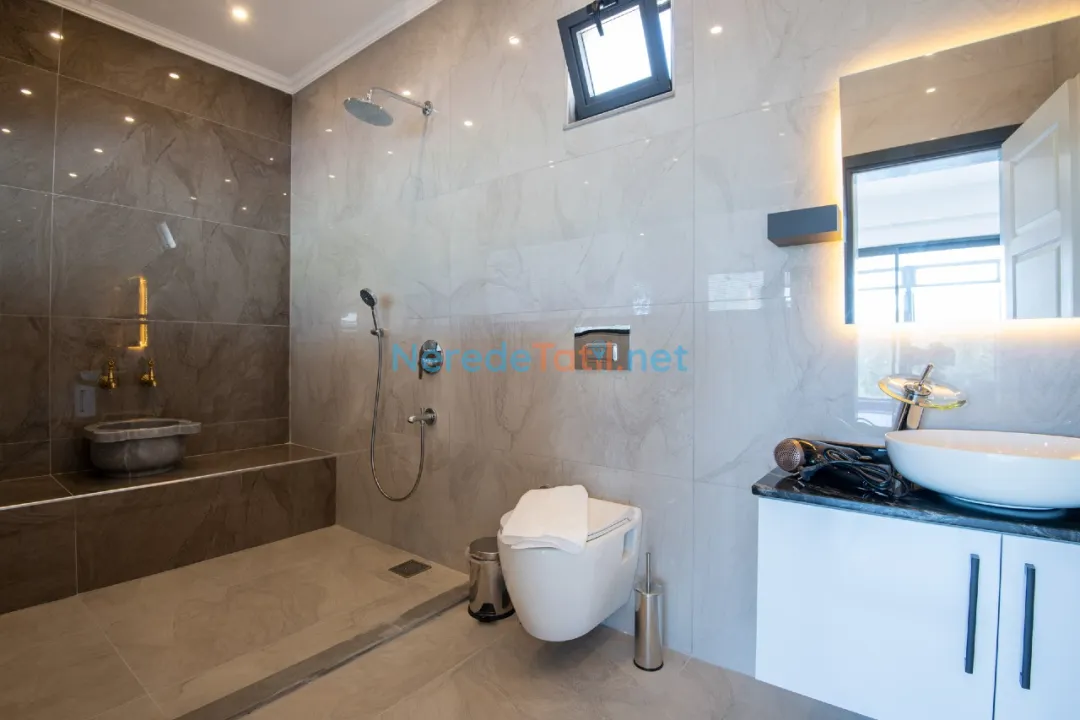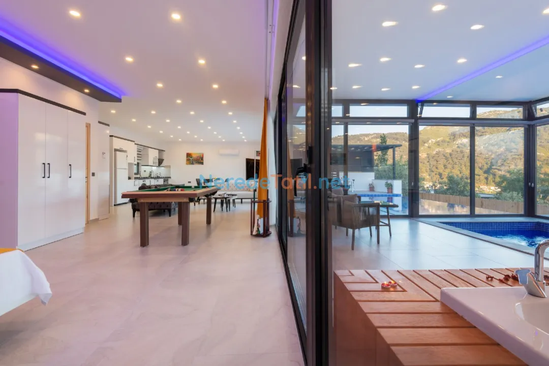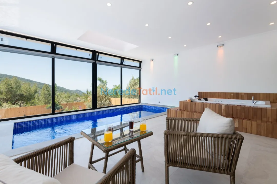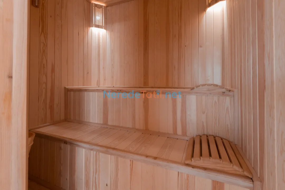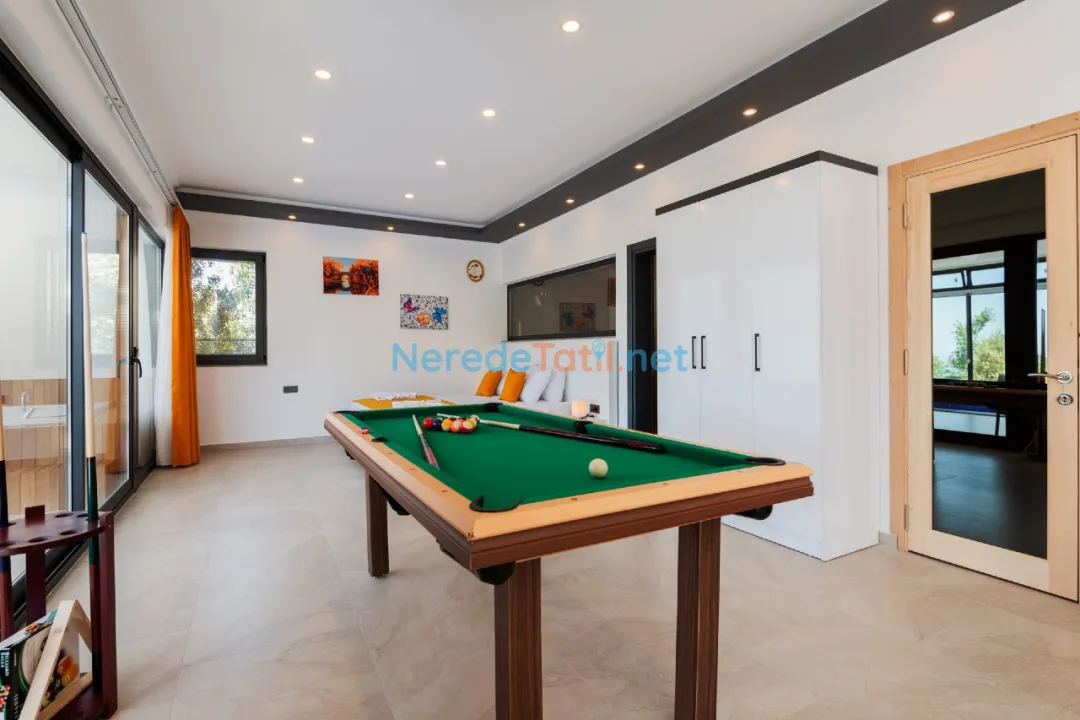 Villa, jakuzili ve sauna gibi dinlenme olanaklarıyla donatılmıştır. Ayrıca, hamam keyfi ile ziyaretçilerine benzersiz bir deneyim sunuyor. Korunaklı yapısı sayesinde muhafazakar tatil tercih eden misafirler için idealdir. Villanın içinde ayrıca bilardo masası bulunmaktadır, böylece eğlenceli vakit geçirebilirsiniz.
