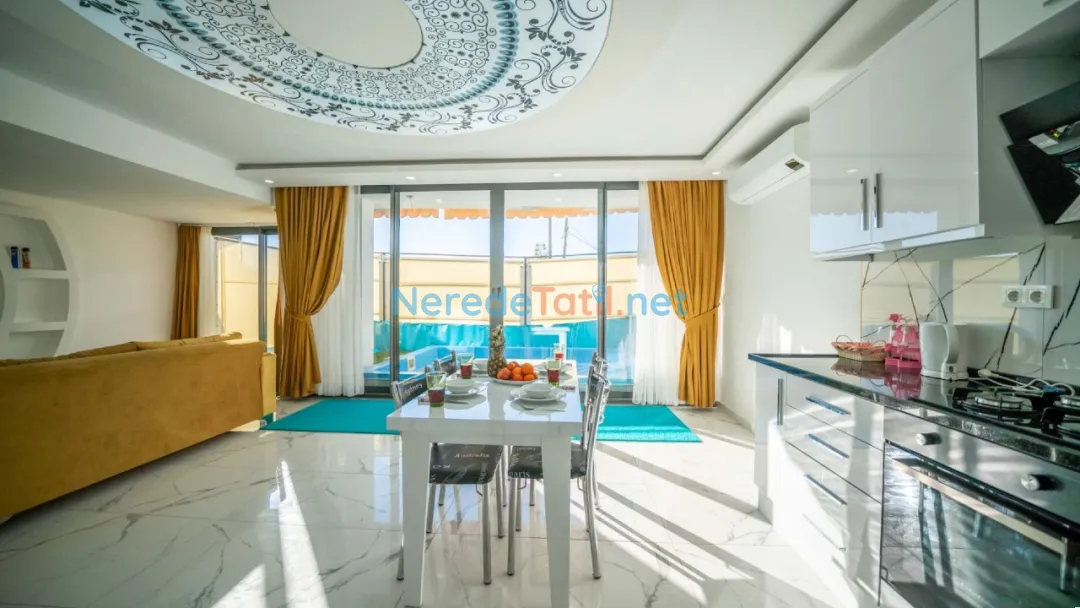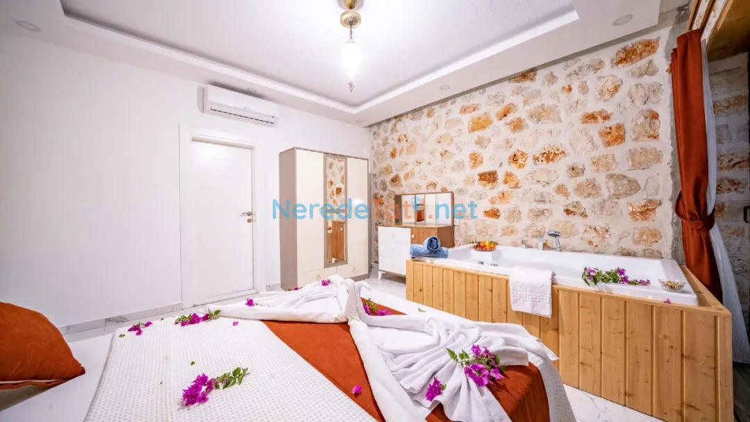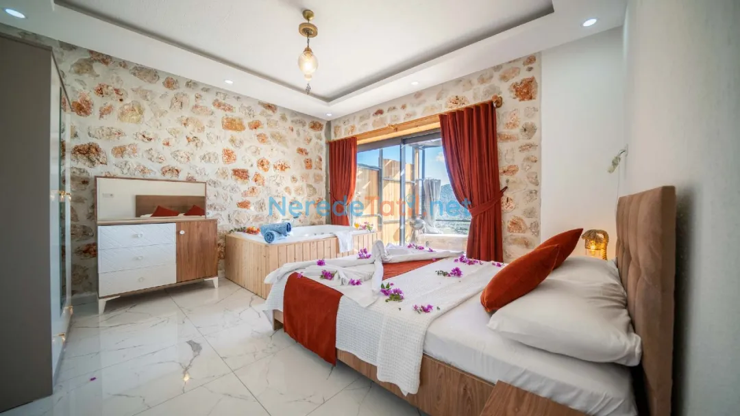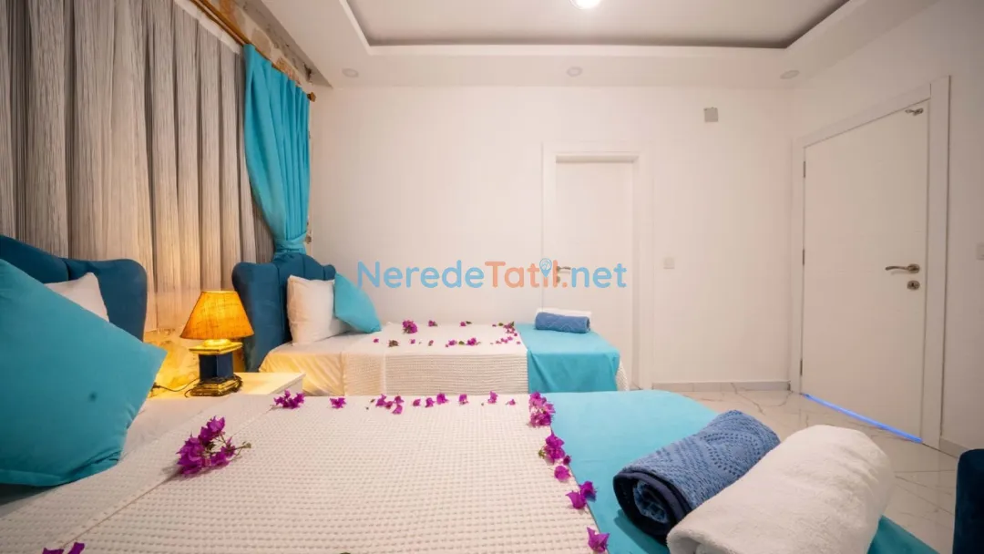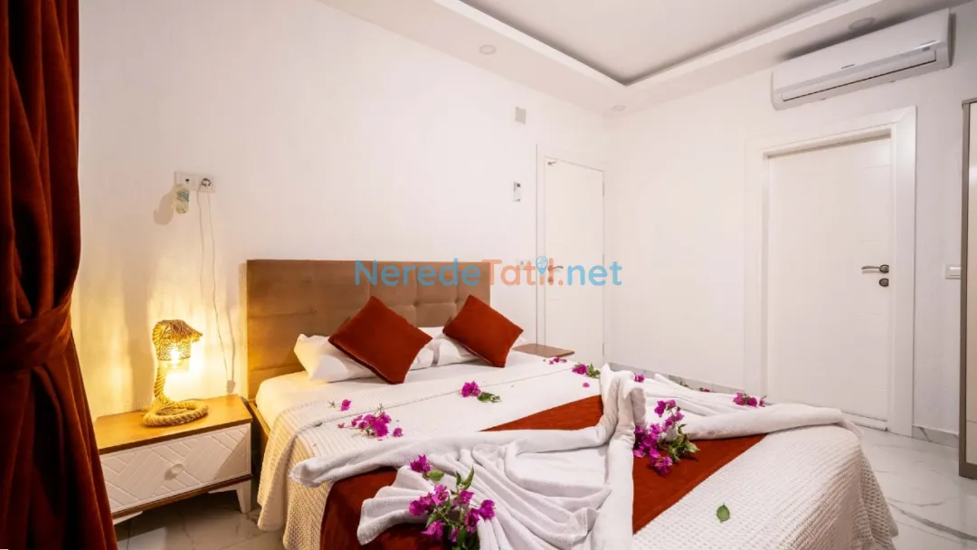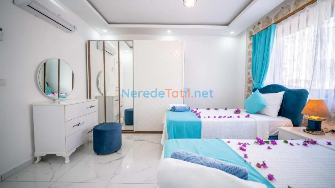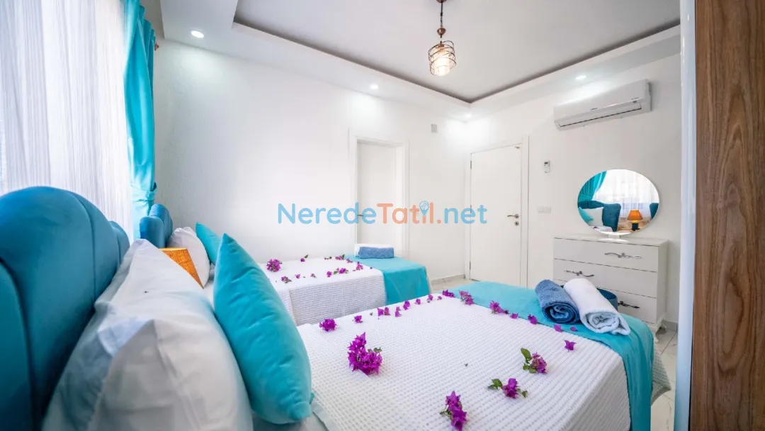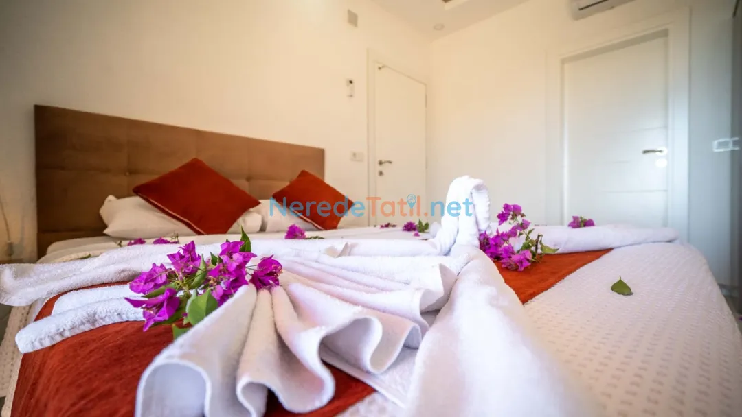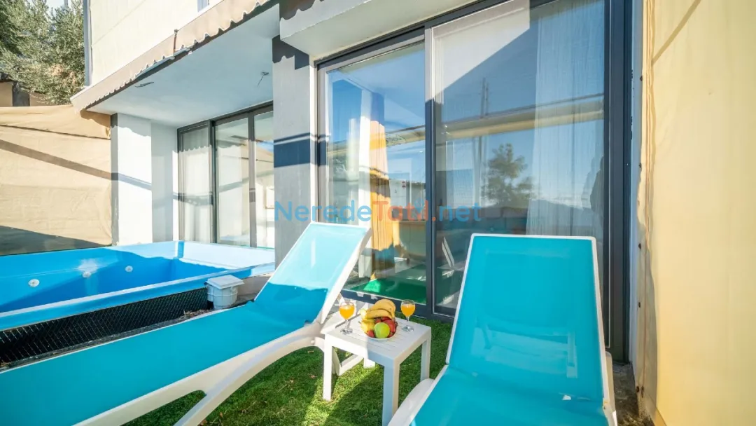 Kördere'nin benzersiz doğasında yer alan bu özel havuzlu villa, lüks bir tatil deneyimi sunuyor. Balayı çiftleri için tasarlanmış villamız, iki yatak odası ve iki banyo ile toplam dört kişilik bir konaklama kapasitesine sahiptir. Geniş yüzme havuzu, 3 metreye 4 metre boyutunda olup 1.45 metre derinliğindedir, böylece sevdiklerinizle huzur içinde yüzmenin keyfini çıkarabilirsiniz.