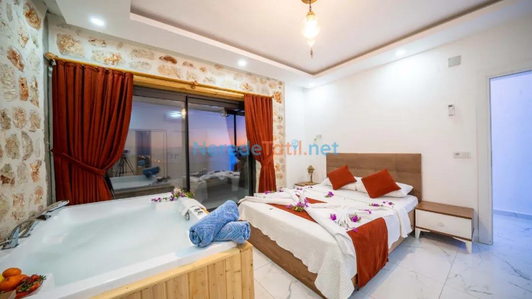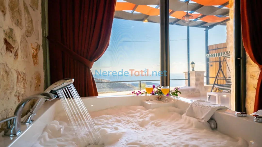 Villamız, deniz manzaralı ve doğa ile iç içe bir konumda bulunmakta, günbatımının tadını çıkarmanız için ideal bir ortam sunmaktadır. İçerisinde bulunan jakuzi ile tatilinizi daha da özel hale getirebilirsiniz. Ayrıca, eğlenceli vakit geçirmek isteyenler için langırt gibi olanaklar da mevcuttur.