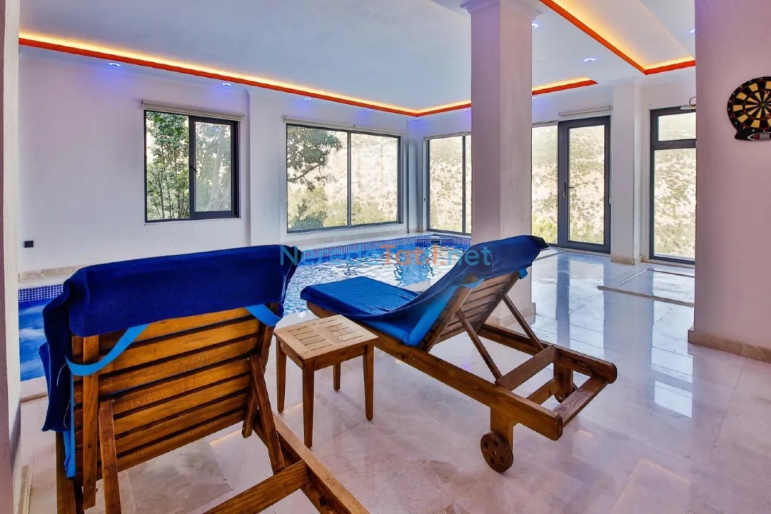Villanın özel yüzme havuzu 3.5 metre genişliğinde, 9 metre uzunluğunda ve 1.55 metre derinliğindedir. Ayrıca, kapalı havuz da 2.5 metre genişliğinde ve 7.5 metre uzunluğundadır, bu da misafirlere yıl boyunca yüzme imkanı tanır. Havuzların korunaklı olması, muhafazakar misafirler için idealdir.