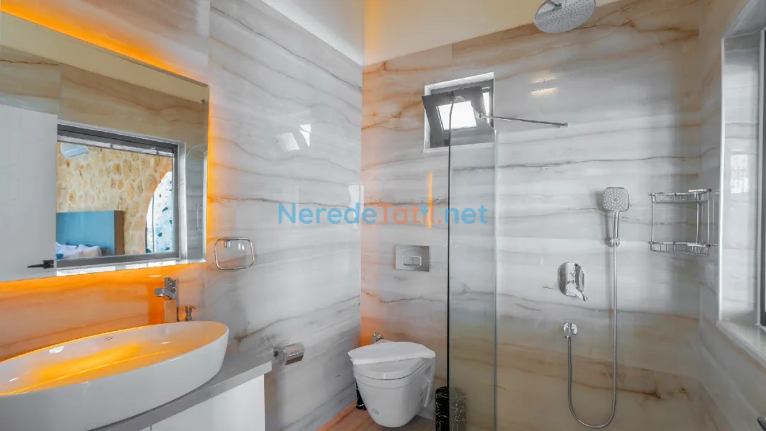 Villada 2 banyo bulunmakta olup, geniş ve konforlu bir yaşam alanı sağlanmıştır. Isıtmalı havuz, kapalı havuz ve korunaklı havuz özellikleri, tatilinizin her mevsim keyifli geçmesini garanti eder. Havuzun ölçüleri 4 metreye 12 metre olup, derinliği 1.5 metredir. Kapalı havuz ise 2.5 metreye 4.5 metre ölçülerindedir ve derinliği 1.3 metredir.