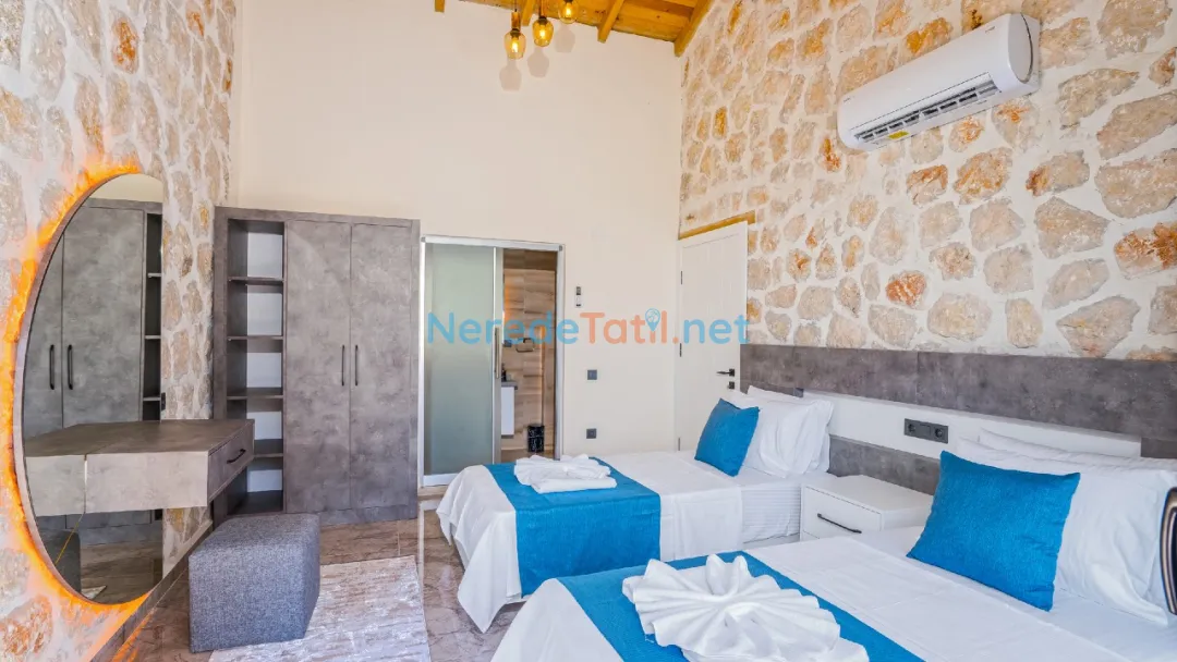 İslamlar'ın eşsiz doğasında konumlanmış bu lüks villa, misafirlerine unutulmaz bir tatil deneyimi sunuyor. Deniz manzarası eşliğinde dinlenirken, özel havuzun tadını çıkarabilirsiniz. Villa, 4 kişilik konaklama kapasitesine sahiptir ve iki yatak odası ile konforlu bir yaşam alanı sunar. Yatak odalarından biri çift kişilik yatak, diğeri ise iki tek kişilik yatakla donatılmıştır.