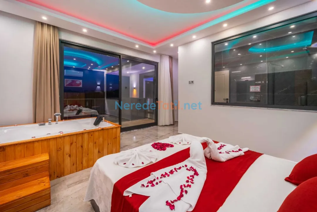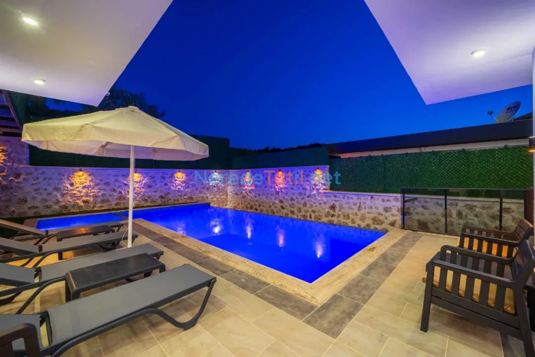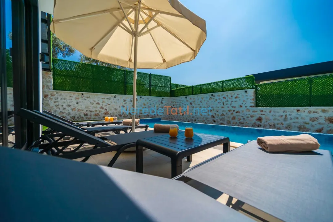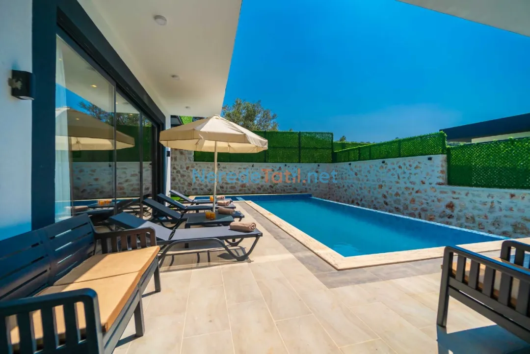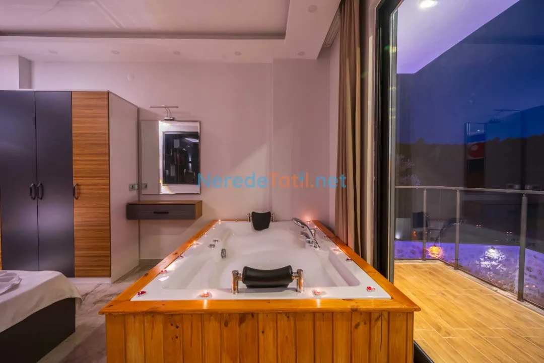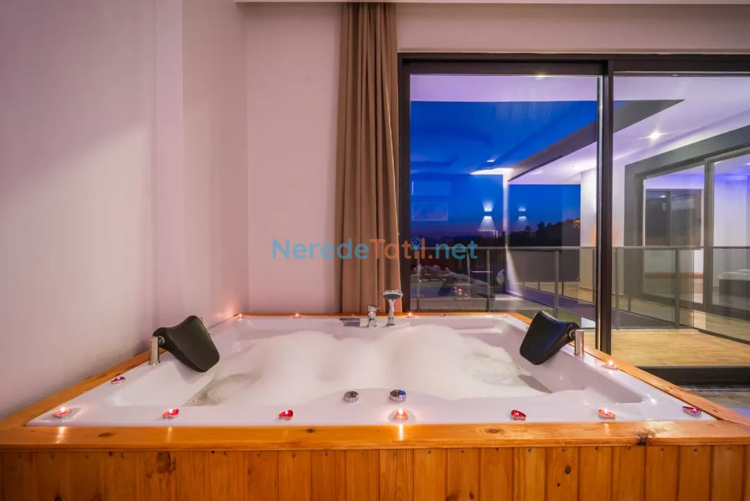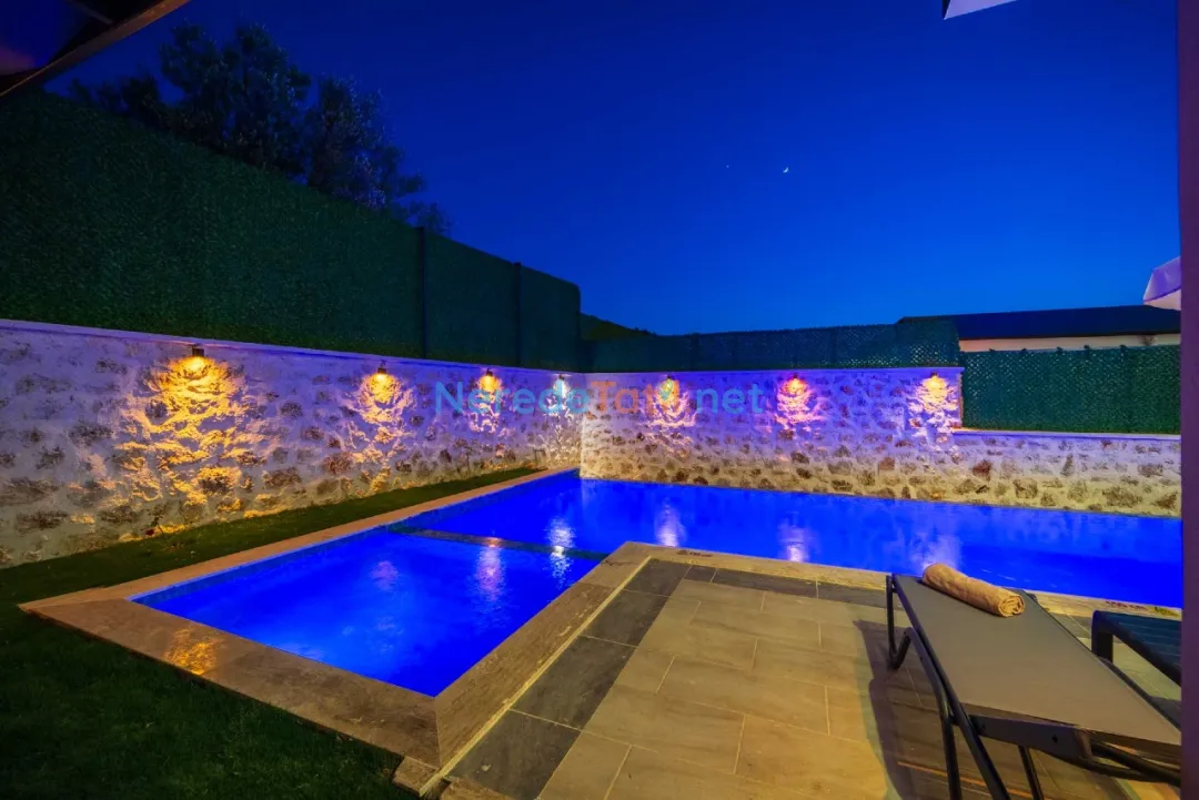 Özel olarak korunaklı dizayn edilmiş yüzme havuzu, 4 metre genişliğinde, 9 metre uzunluğunda ve 1.5 metre derinliğindedir. Bu havuz, mahremiyet arayan misafirler için idealdir. Ayrıca, villanın içerisindeki jakuzi, yorgun bir günün ardından rahatlamanız için mükemmel bir seçenektir.