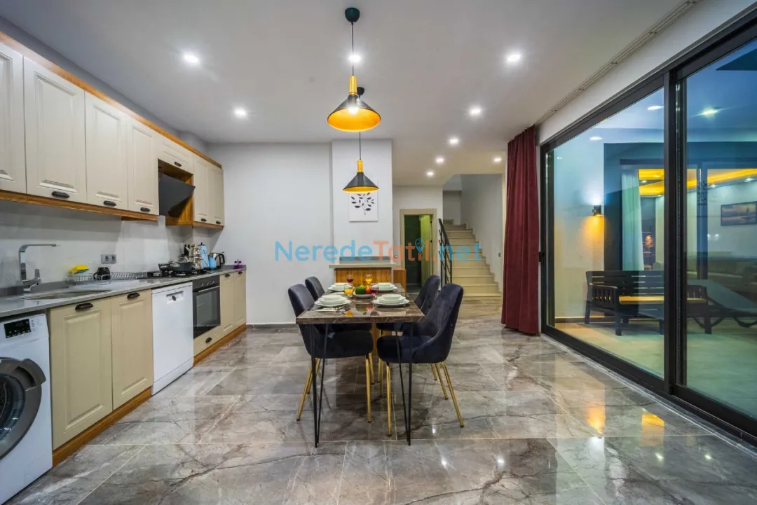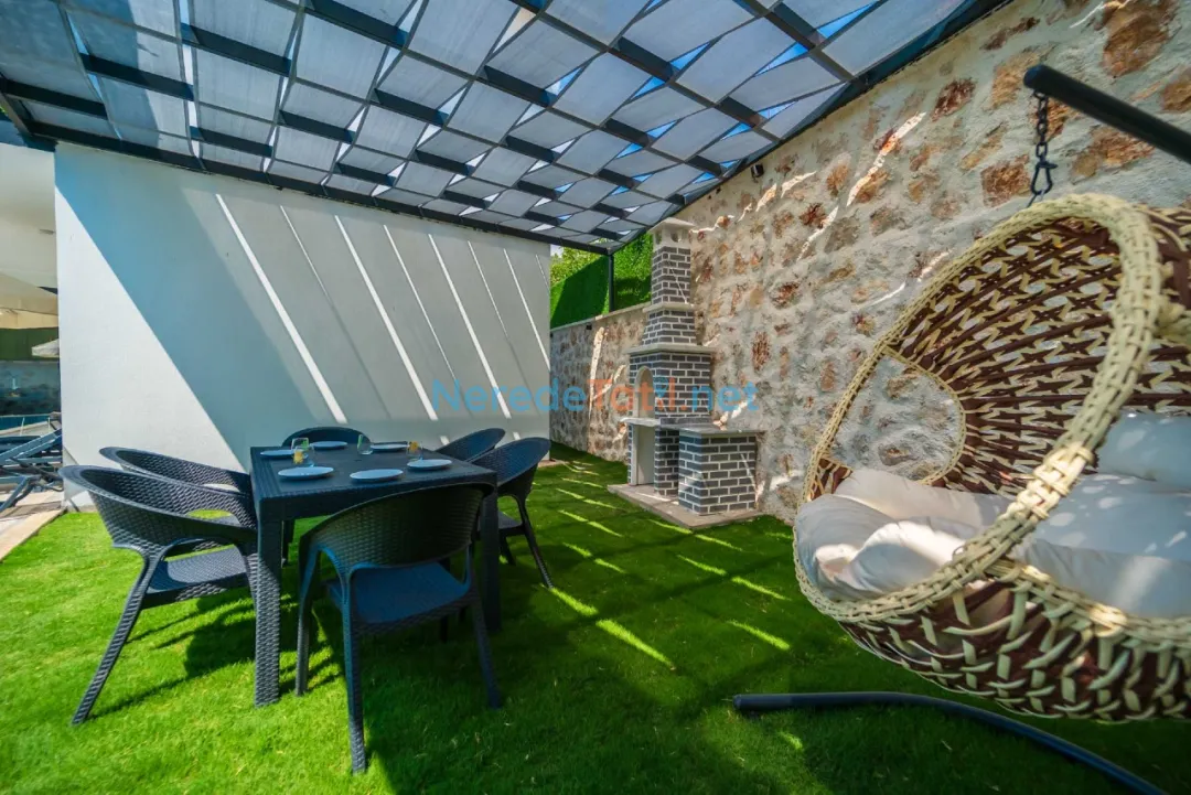 Villanın sunduğu diğer olanaklar arasında bahçede BBQ - Mangal yapma imkanı, otopark, saç kurutma makinesi ve ütü bulunmaktadır. Modern ve şık tasarımı ile bu villa, konfordan ödün vermeyen bir tatil vaat ediyor.