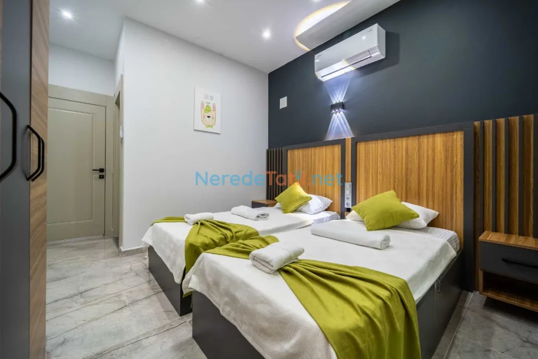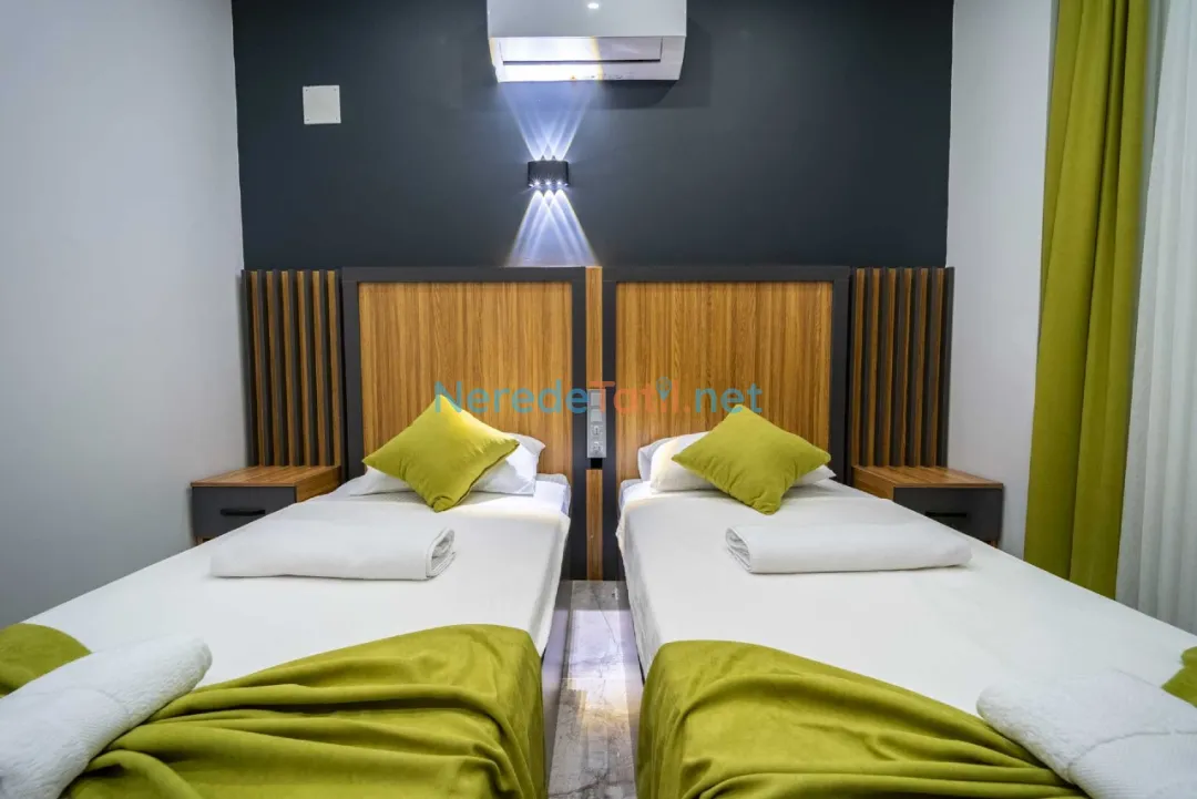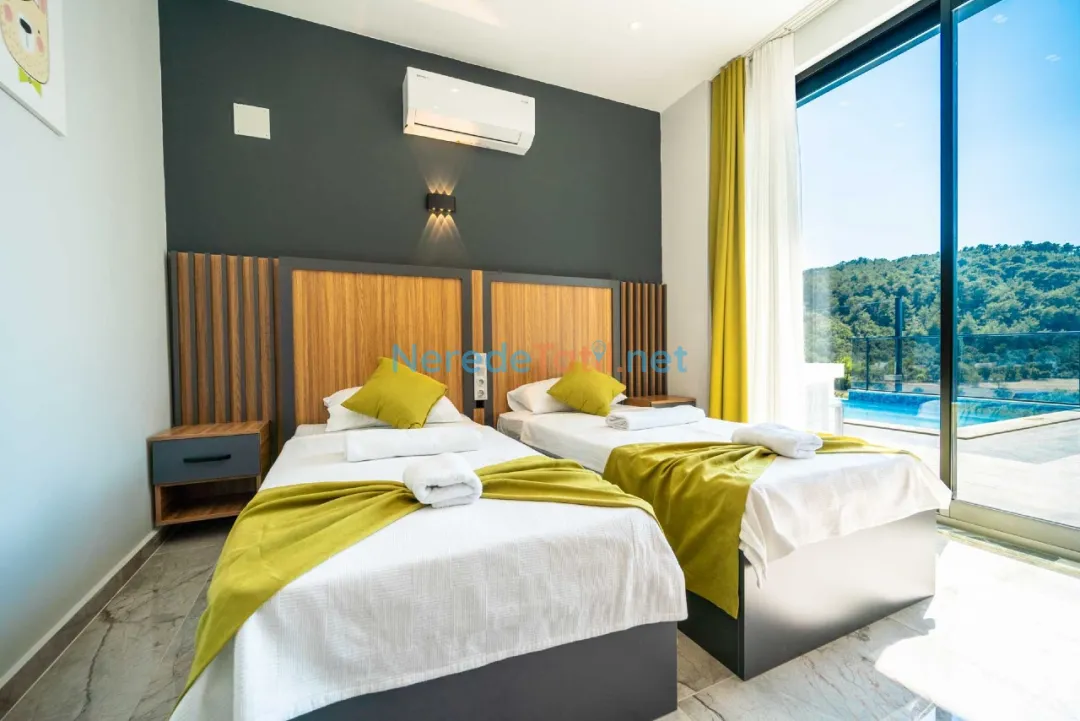 Villa, toplamda 6 kişilik kapasitesi ile üç yatak odasına sahip olup, konforlu bir deneyim sunar. İki çift kişilik ve iki tek kişilik yatağı bulunan odalar, modern ve zarif bir dekorasyona sahiptir. Her odada banyo bulunması, konforlu bir tatil geçirmenizi sağlar. Dinlenirken jakuzi keyfi yapabilir, villanın bahçesinde barbekü partileri düzenleyebilirsiniz.