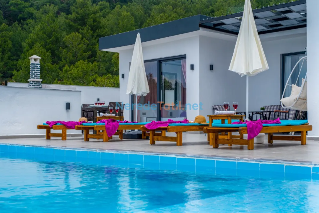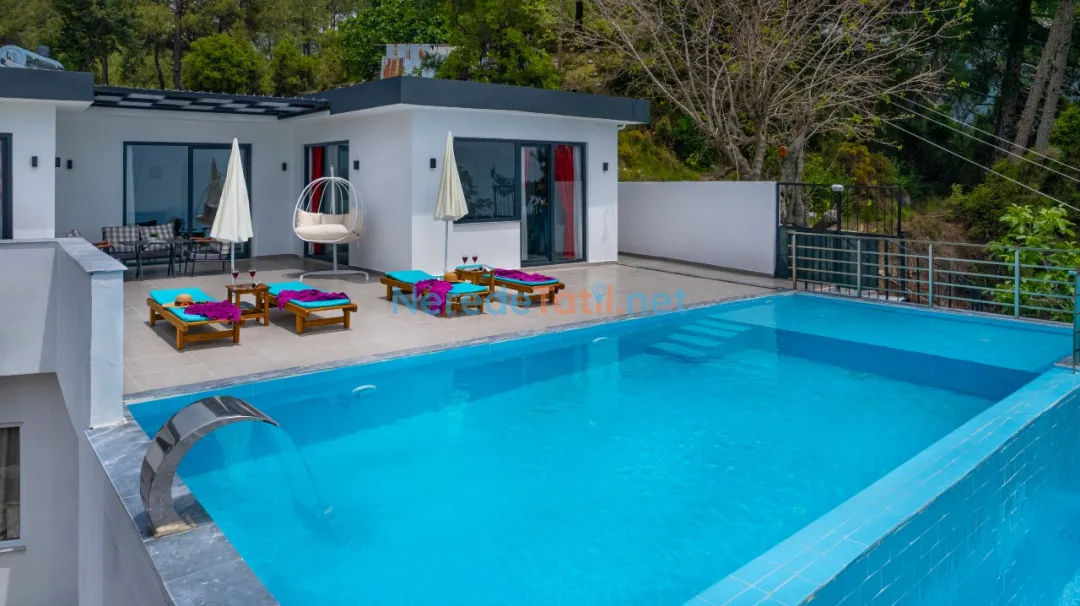 Villa, özel yüzme havuzu ile dikkat çekmektedir. 4.5 metre genişliğinde ve 9.5 metre uzunluğundaki havuz, tatiliniz boyunca serinlemenize olanak tanır. Havuzun derinliği ise 1.5 metredir. Ayrıca, villa deniz manzarası ile misafirlerine benzersiz bir görsellik sunar.