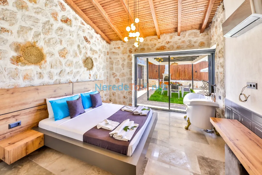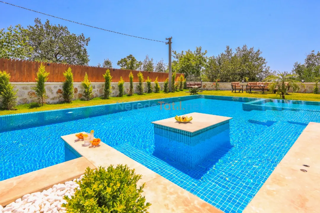 Villanın korunaklı havuzu ve bahçesi, mahremiyet arayan misafirler için özel olarak tasarlanmıştır. Balayı çiftleri için romantik bir atmosfer sunan villada, mangal keyfi yapabileceğiniz BBQ alanı da mevcuttur. Villanın doğa ile iç içe manzarası, huzurlu bir tatil deneyimi yaşatır.