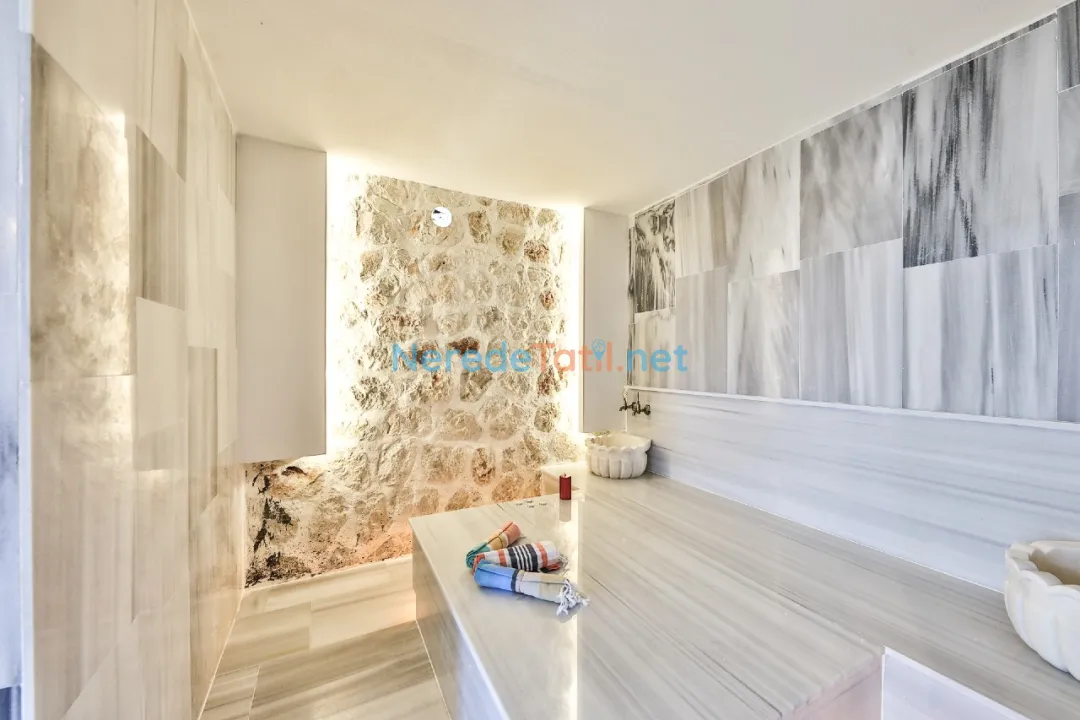 Villa, üç yatak odası ve üç banyosu ile toplamda altı kişiye kadar konaklama imkanı sunar. İki adet çift kişilik yatak ve iki adet tek kişilik yatak, misafirler için konforlu bir uyku deneyimi sağlar. Lüks villada ayrıca jakuzi, sauna ve hamam gibi ayrıcalıklar da bulunmaktadır.