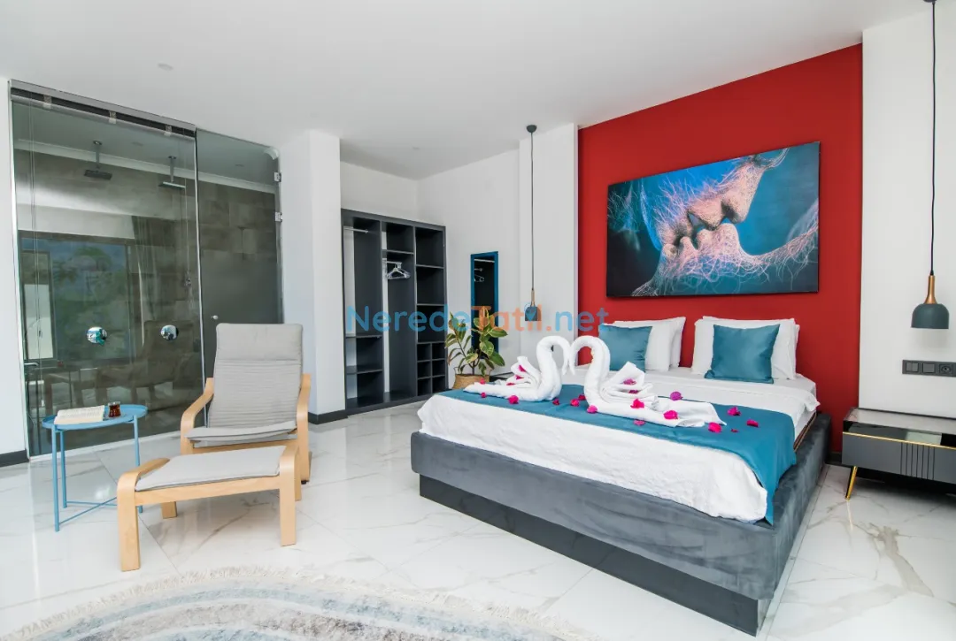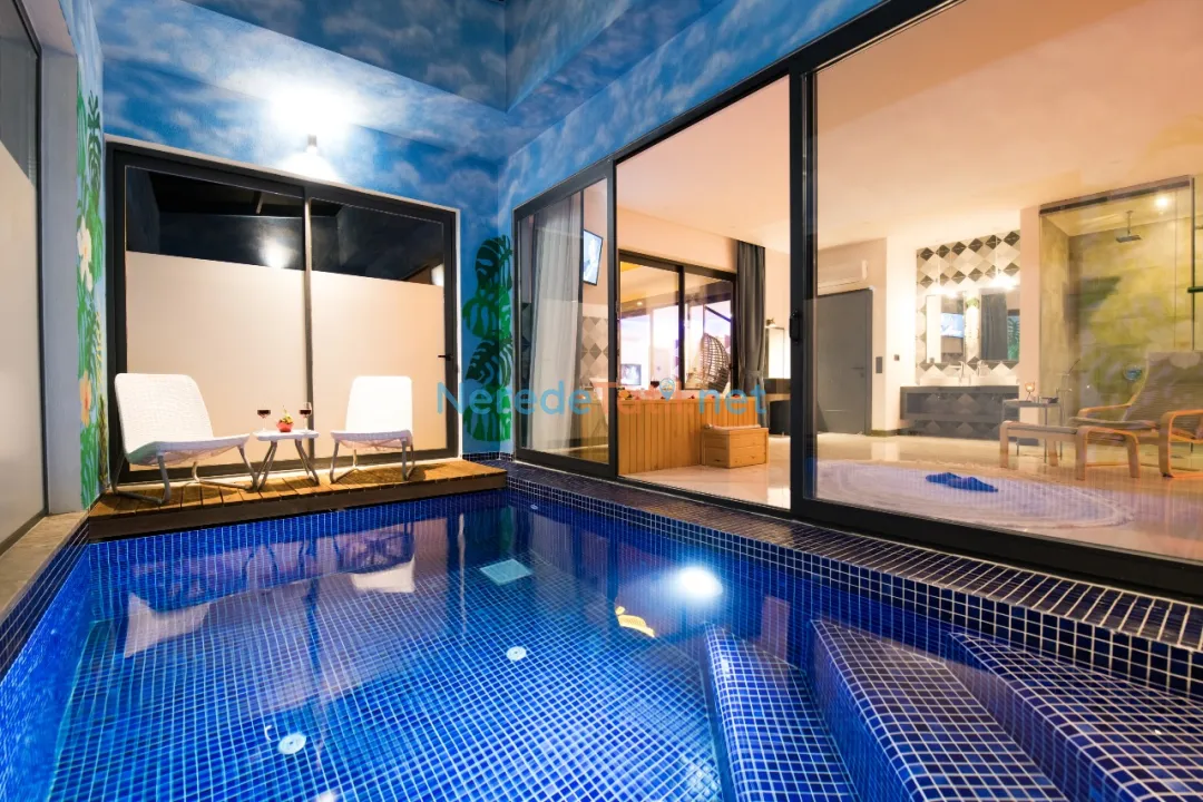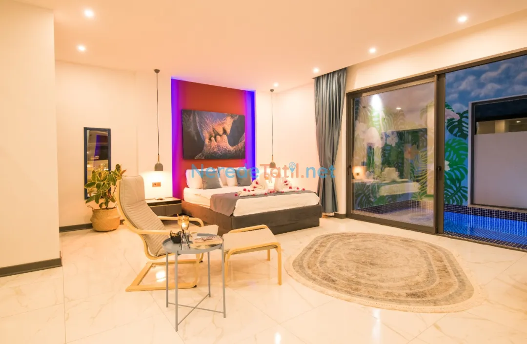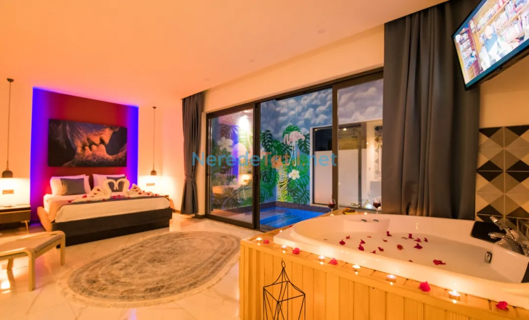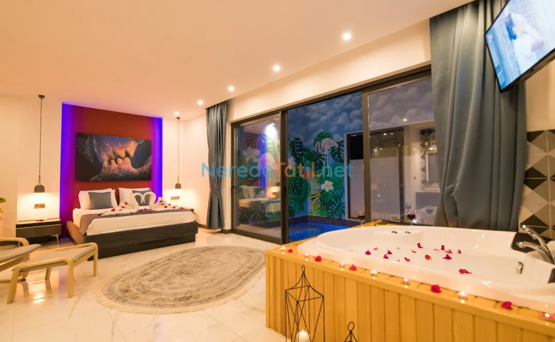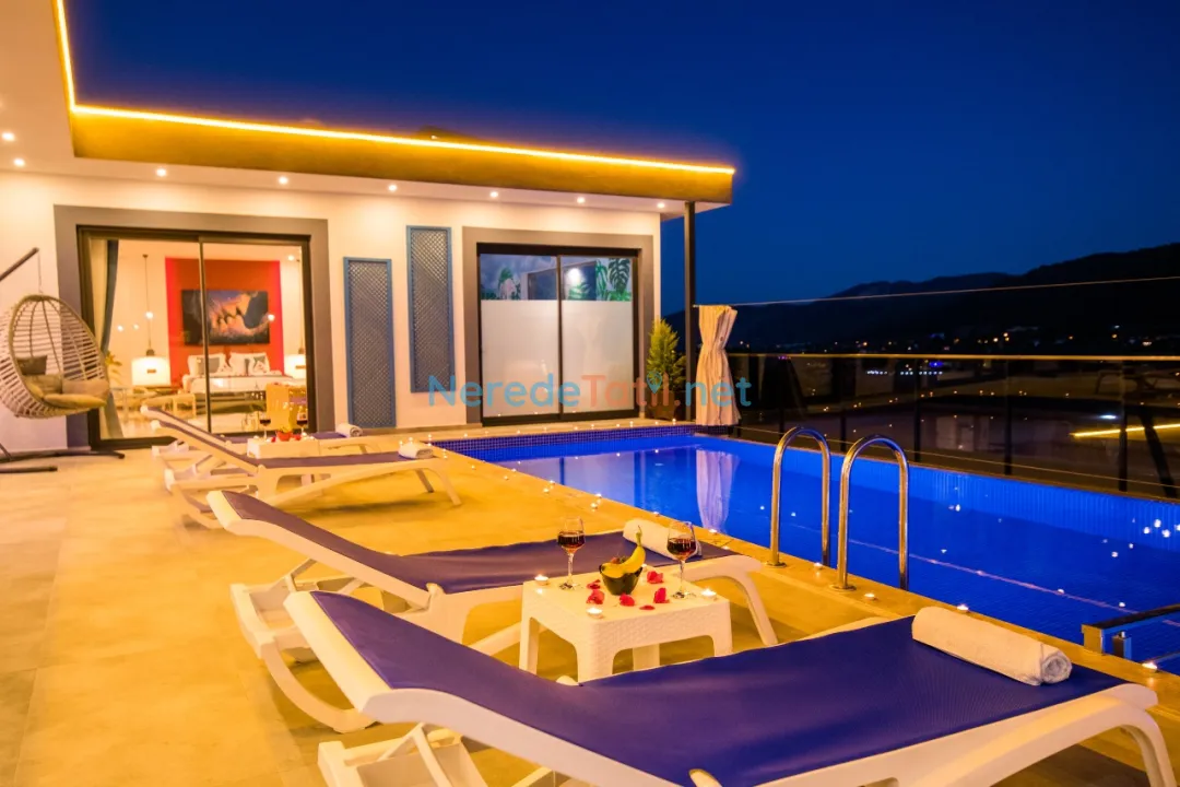 Sarıbelen'in eşsiz doğasında konumlanmış bu lüks villa, balayı çiftleri ve aileler için mükemmel bir kaçış noktası sunuyor. Villamız, özel yüzme havuzu ve kapalı ısıtmalı havuzuyla her mevsim tatil imkanını sizlere sağlıyor. Havuz ölçüleri 4 metre en, 10 metre boy ve 1.5 metre derinlik ile rahat bir yüzme deneyimi sunarken, kapalı havuz 2.5 metre en ve 4 metre boy ile 1.4 metre derinliğe sahip.