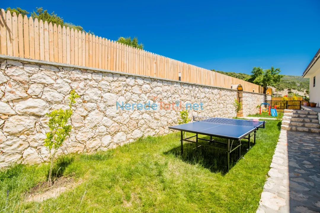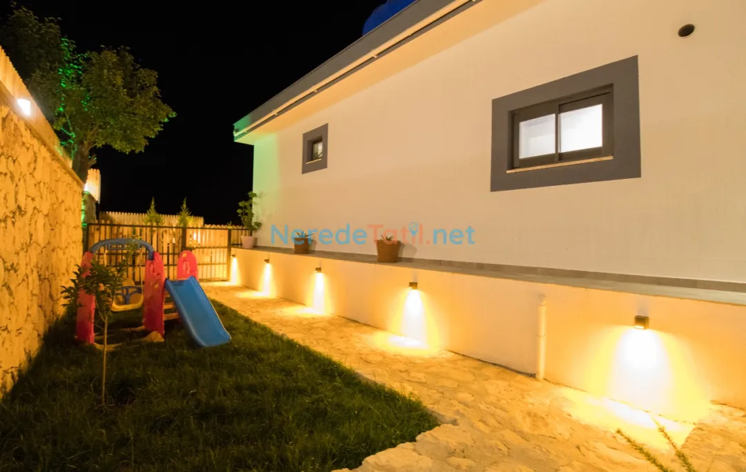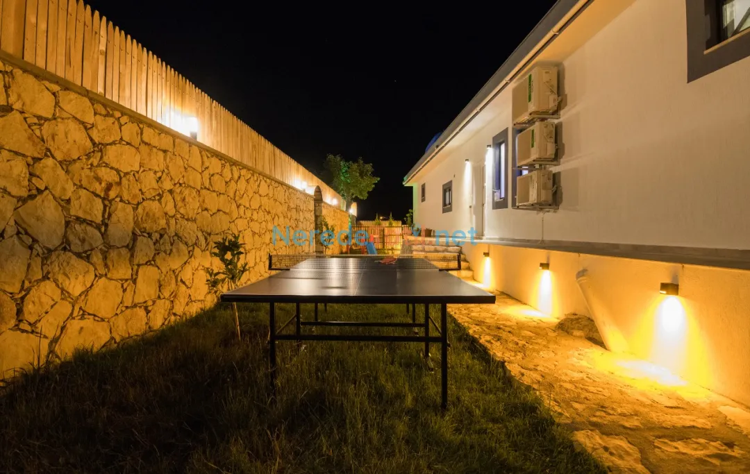 Misafirler, korunaklı havuz ve doğa manzarası ile huzurlu anlar yaşayabilir. Ayrıca BBQ - Mangal alanı ve bahçesi sayesinde açık havada keyifli vakit geçirebilirsiniz. Villanın özellikleri arasında masa tenisi, oyun alanı, otopark, saç kurutma makinesi ve ütü de bulunmaktadır.