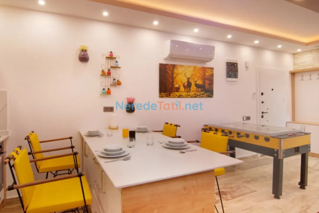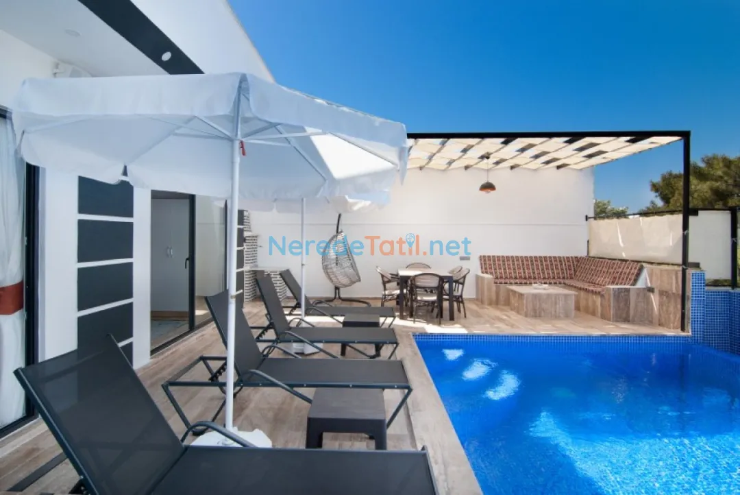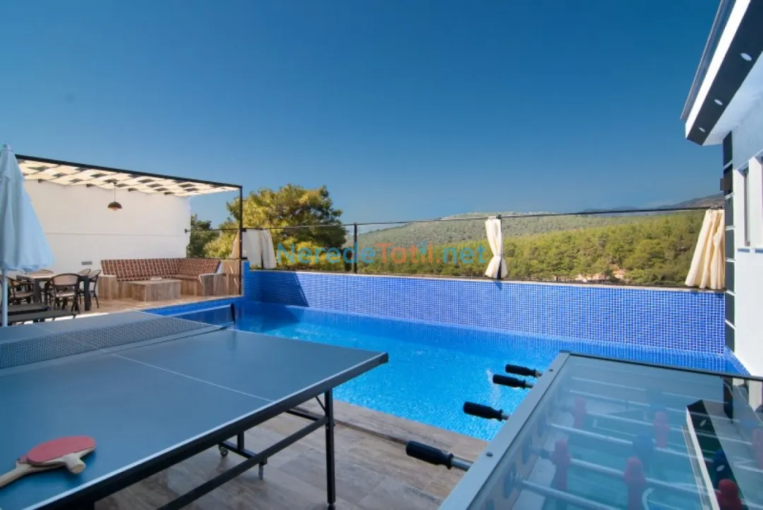 Villanın korunaklı havuzu mahremiyet arayan konuklar için idealdir. Tatilinize eğlence katacak langırt ve masa tenisi gibi aktiviteler de villada mevcuttur. Doğa ile iç içe konumlanan villa, aynı zamanda modern olanaklarla konforlu bir yaşam alanı sunmaktadır.