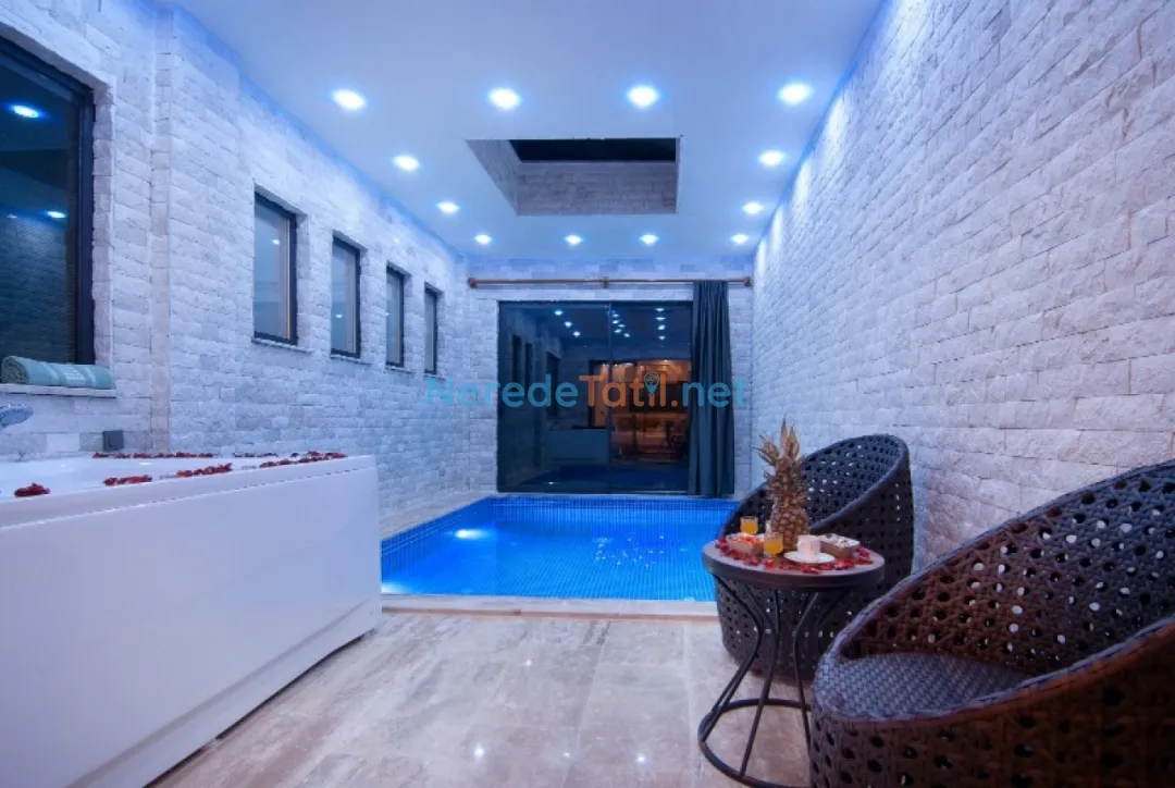 Villanın en dikkat çekici özelliği, özel ve ısıtmalı havuzudur. Açık havuz, 4 metre eninde, 10 metre boyunda ve 1.5 metre derinliğindedir, böylece misafirler diledikleri an serinleyebilir. Ayrıca kapalı havuz seçeneği de mevcut olup, bu havuz 3.5 metre eninde, 4 metre boyunda ve 1.4 metre derinliğinde olup ısıtma özelliğine sahiptir.