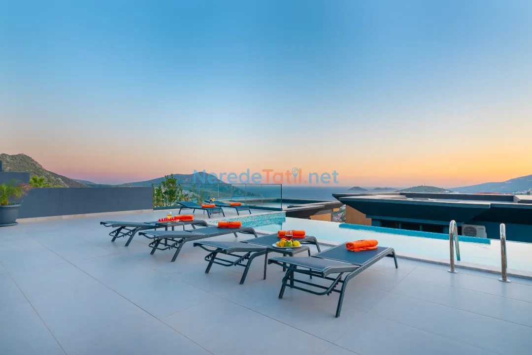 Özel yüzme havuzu, 4 metre genişliğinde, 8 metre uzunluğunda ve 1.6 metre derinliğinde olup, deniz ve doğa manzarası eşliğinde huzur dolu anlar yaşatır. Villanın deniz manzaralı ve doğa manzaralı olması, misafirlere görsel bir şölen sunuyor.