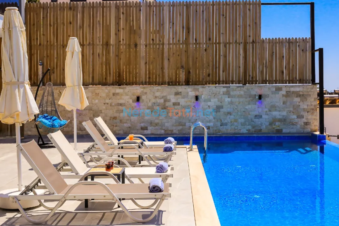 Villa, deniz manzarası ve doğa manzaralı konumu ile huzurlu bir tatil imkanı sunuyor. Aynı zamanda, muhafazakar misafirler için korunaklı havuz alanı mevcut.