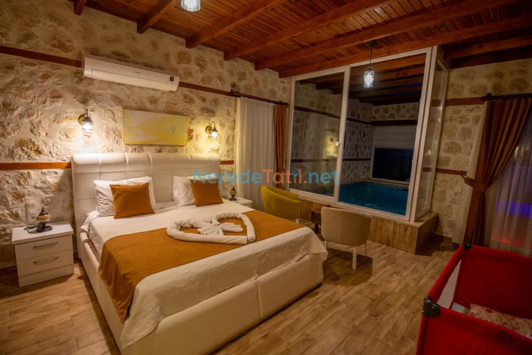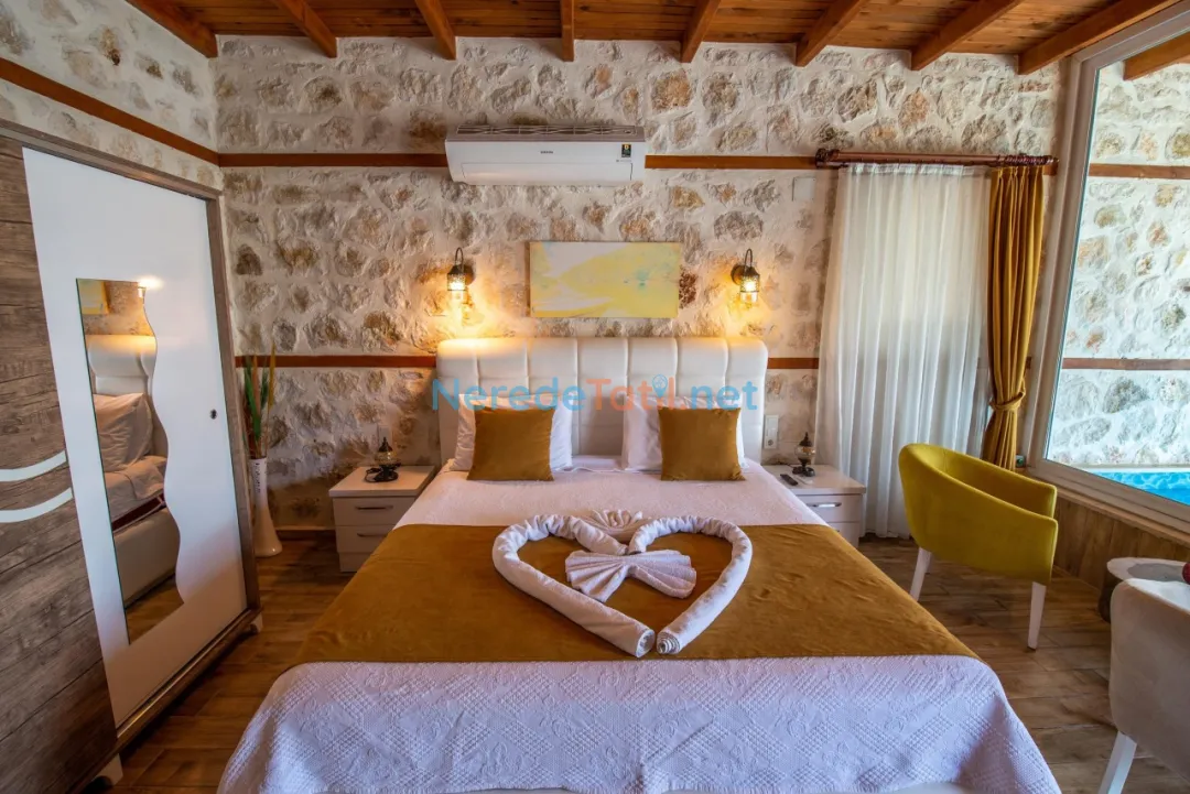 İslamlar'da konumlanmış bu lüks villa, doğa manzarası ile huzurlu bir tatil sunmaktadır. Villa, balayı çiftleri için özel olarak tasarlanmış olup, özel havuzlu ve ısıtmalı havuz gibi ayrıcalıklara sahiptir. 3,5 metre eninde ve 7,5 metre boyundaki yüzme havuzu, serinlemek ve dinlenmek için idealdir. Ayrıca, 2,5 metre eninde ve 4 metre boyunda bir kapalı havuz da bulunmaktadır, böylece her mevsim suyun keyfini çıkarabilirsiniz.