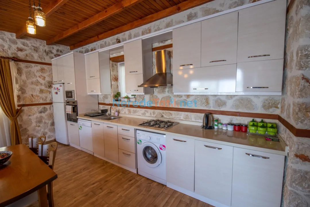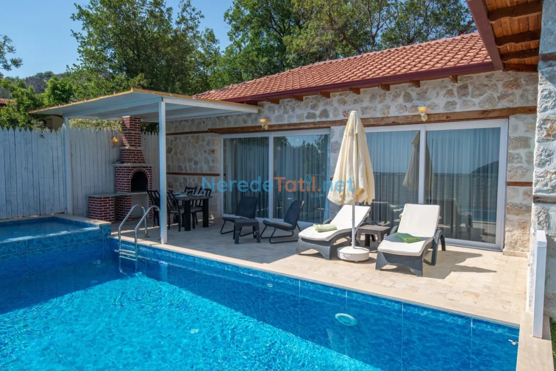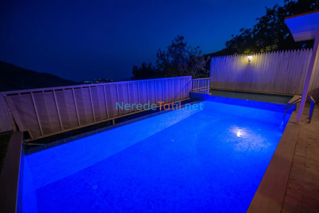 Villanın korunaklı havuzu mahremiyet sağlarken, otopark olanağı araç sahipleri için kolaylık sunar. Saç kurutma makinesi ve ütü gibi gereçler de konforlu bir konaklama deneyimi için düşünülmüştür.