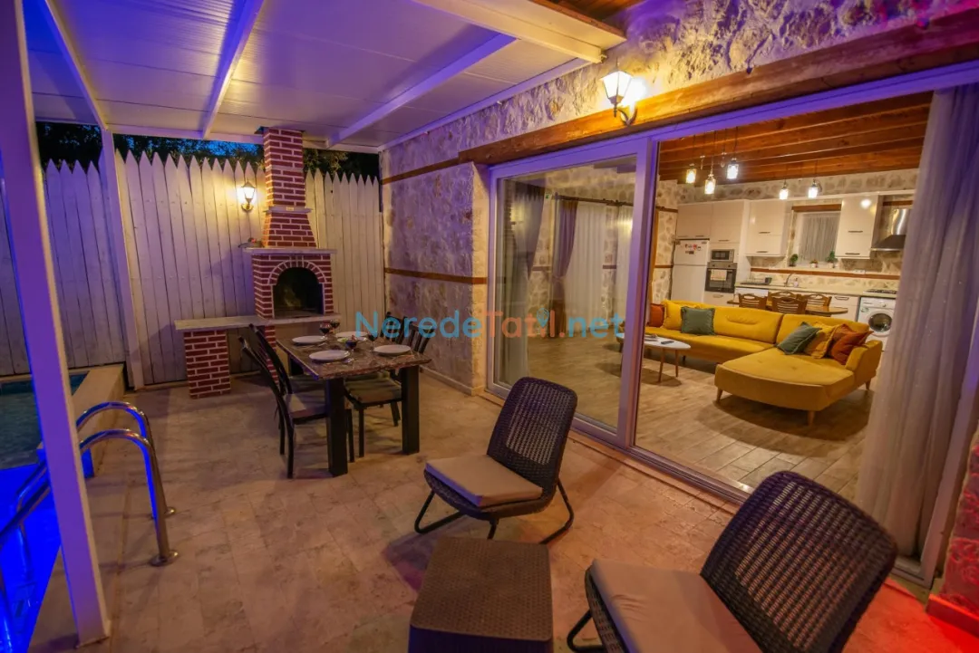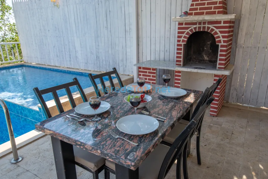 Villada çift kişilik bir yatak ve bir banyo bulunmaktadır, bu da çiftlere rahat bir konaklama sağlar. Bebek yatağı da mevcuttur, bu da küçük çocuklu aileler için uygundur. Bahçeli alan ve BBQ - Mangal imkanları keyifli akşam yemekleri için idealdir.
