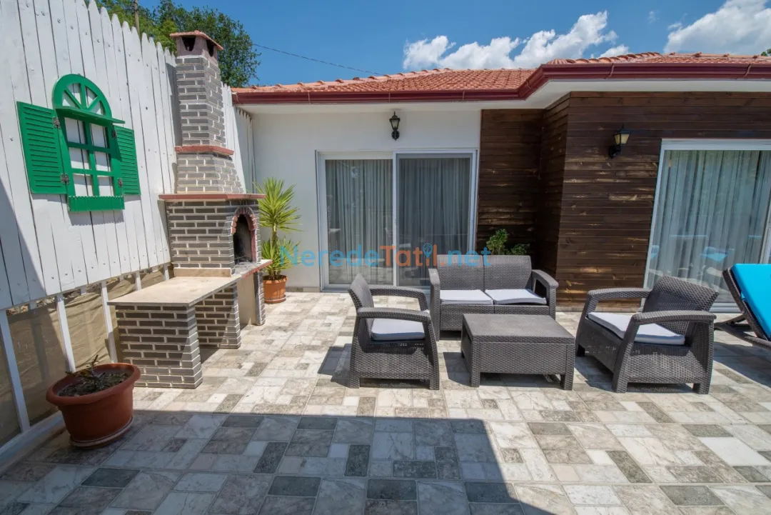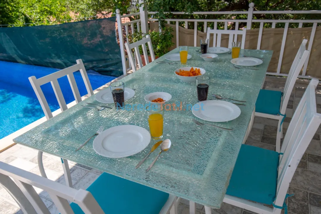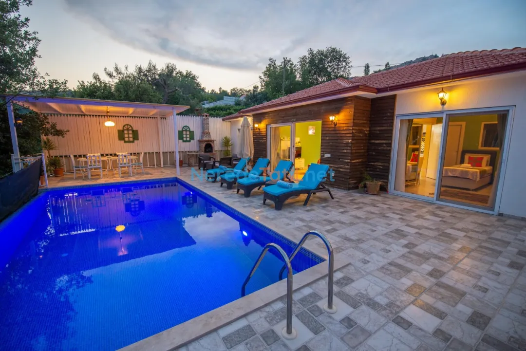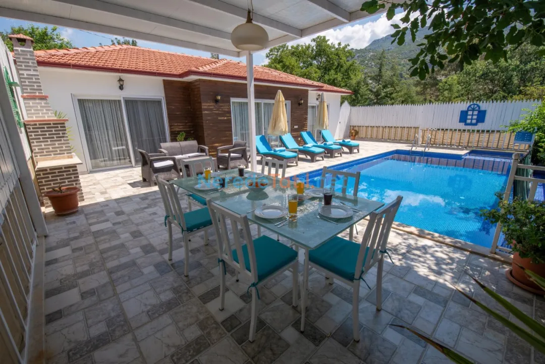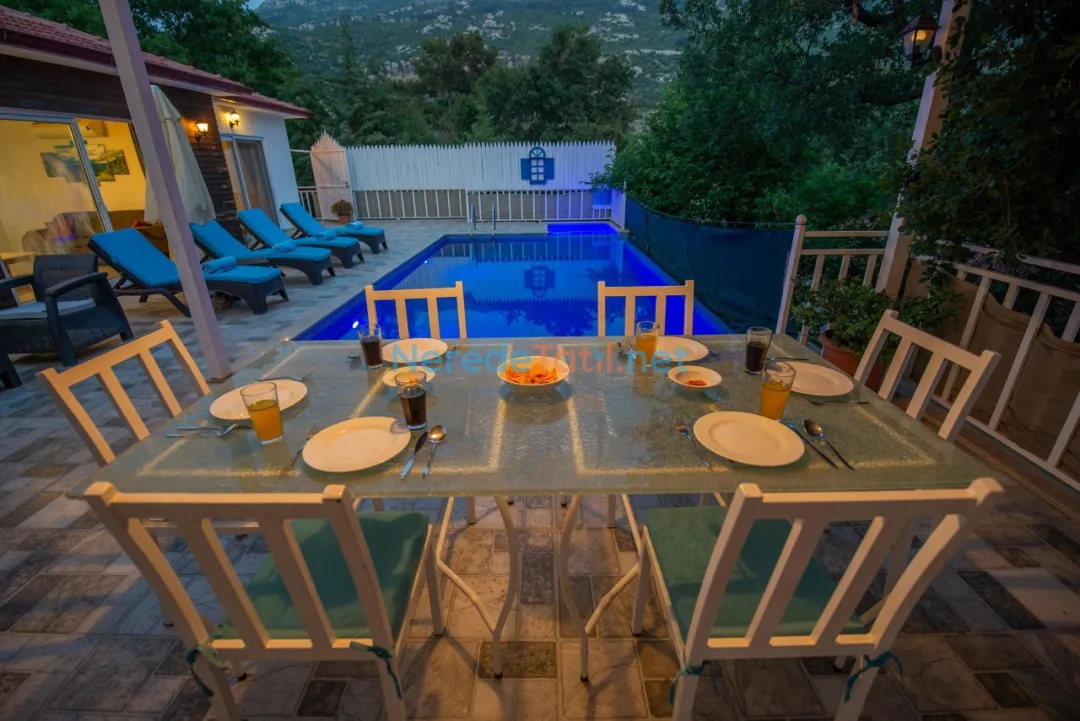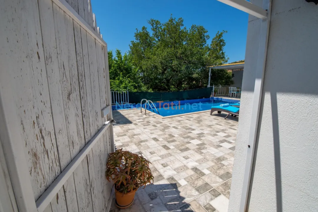 Villanın geniş ve korunaklı özel havuzu, 4 metre eninde, 8 metre boyunda ve 1.55 metre derinliğe sahiptir. Çocuklar için ise 2x2 metre ölçülerinde ve 60 cm derinliğinde bir çocuk havuzu mevcuttur. Havuz etrafındaki doğa manzarası eşliğinde barbekü keyfi yapabilir, tamamen izole bir ortamda dinlenebilirsiniz.