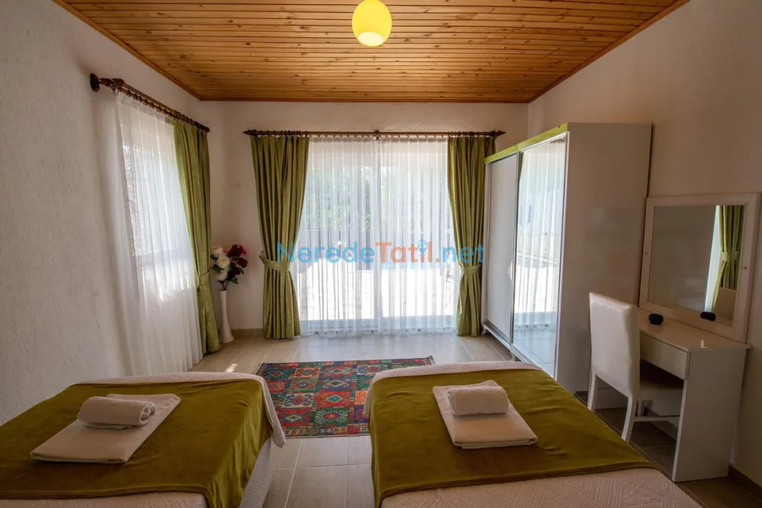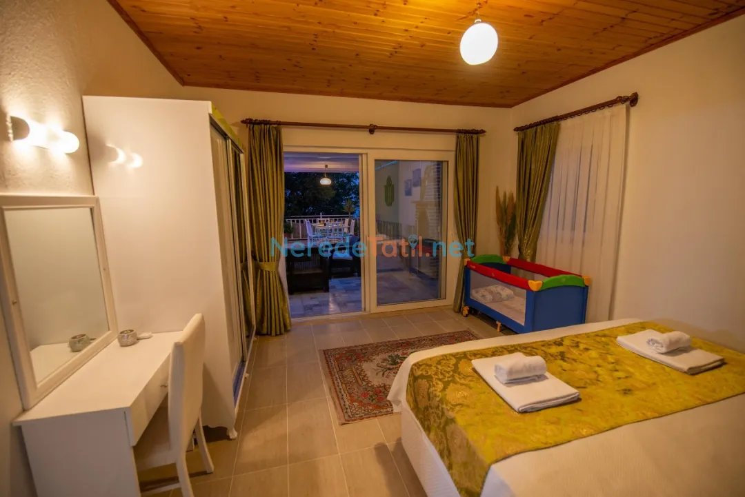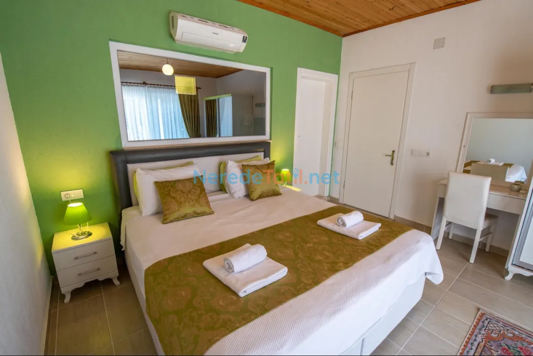 İslamlar'ın huzurlu doğasında konumlanan bu lüks villada, dört kişiye kadar misafir ağırlama kapasitesi bulunuyor. İki yatak odası ve iki banyosu ile konforlu bir konaklama sunan villa, balayı çiftleri için ideal bir tatil mekanıdır. Ana yatak odasında çift kişilik yatak ve jakuzi yer alırken, diğer odada iki tek kişilik yatak bulunmaktadır.