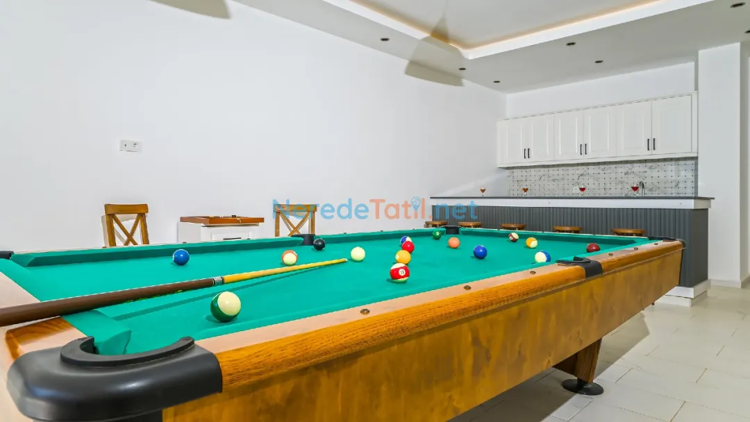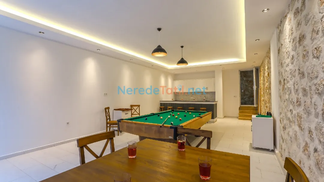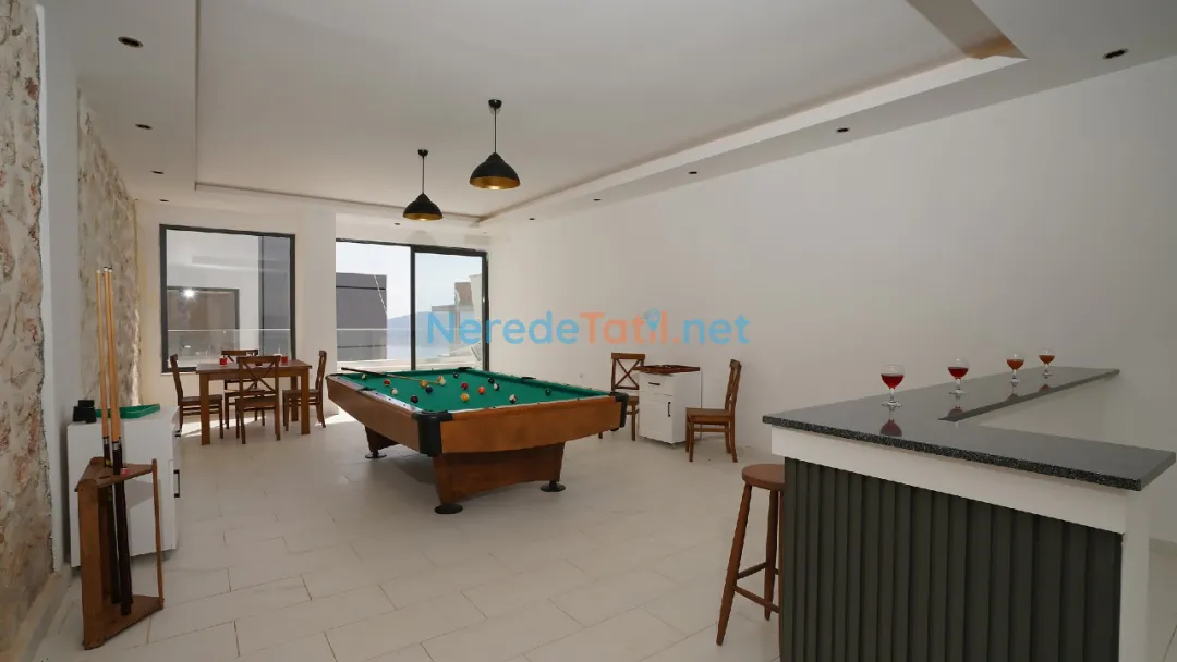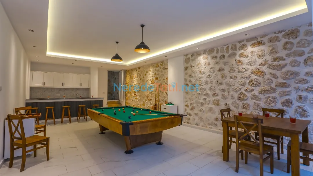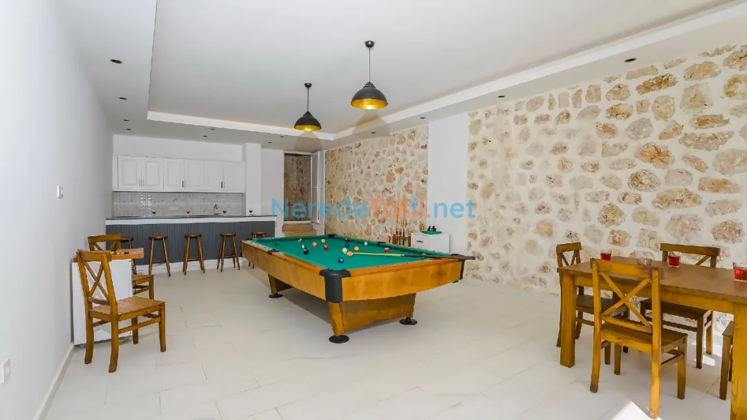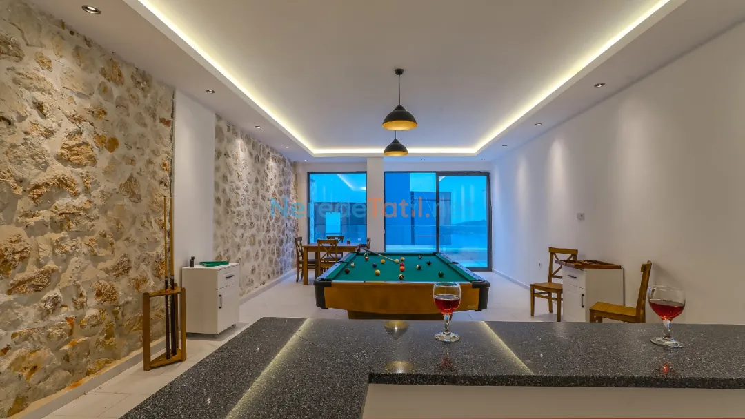 Bilardo masası ve çeşitli alanlarda sağlanan eğlence imkanları, tatilinizi daha da zenginleştirecek. Villanın merkezi konumu sayesinde plaj, market, restoran gibi pek çok noktaya kolaylıkla ulaşabilir, Kalkan'ın sunduğu güzelliklerin tadını çıkarabilirsiniz.